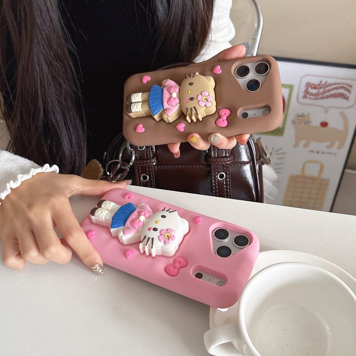 甜美可爱立体蝴蝶结制服KT猫ins韩系爱心花朵17适用16pro苹果16ProMax支架手机壳15Promax/14Promax保护套