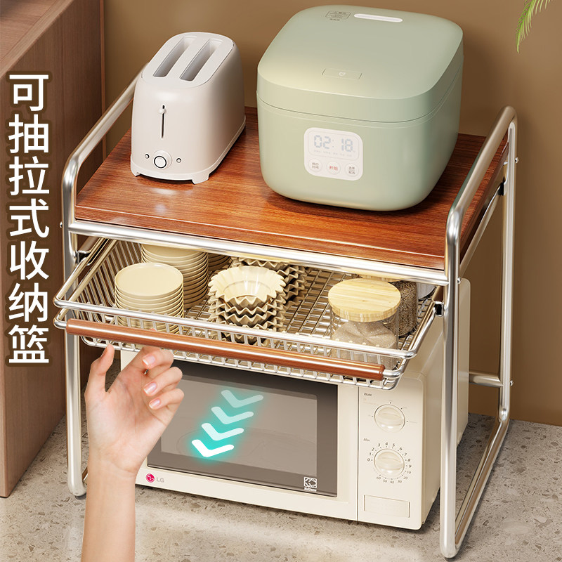 微波炉置物架抽拉式厨房电饭煲架子台面多层多功能电器烤箱收纳架