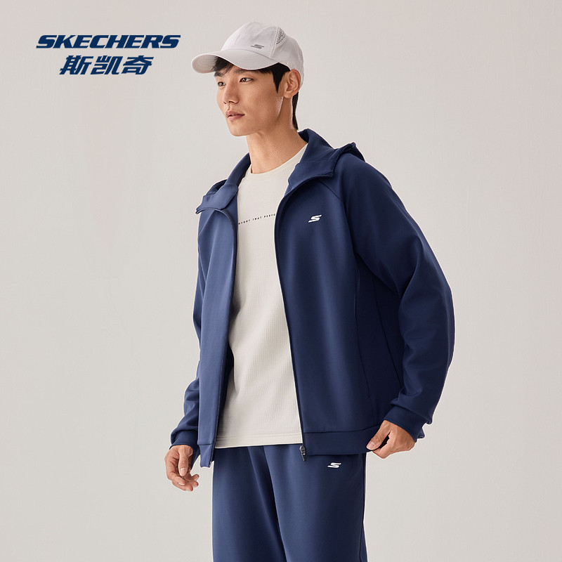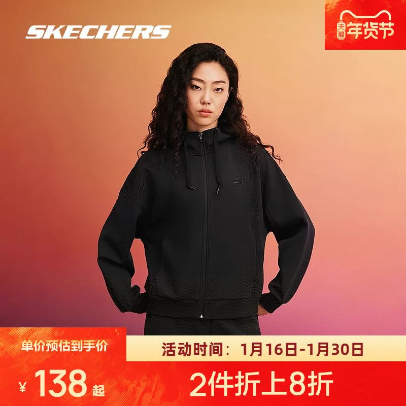 斯凯奇空气层连帽外套2026春季女款宽松长袖运动保暖上衣开衫茄克