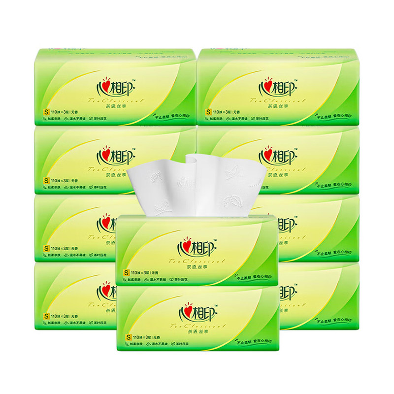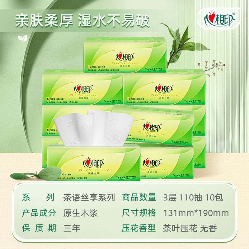 心相印抽纸茶语丝享110抽10包家用实惠装餐巾纸卫生纸面巾纸抽纸