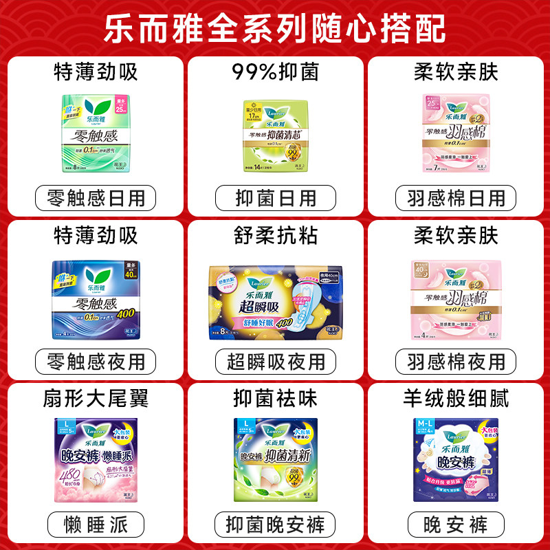 【79元任选3套】花王乐而雅零触感特薄日夜卫生巾姨妈晚安睡裤