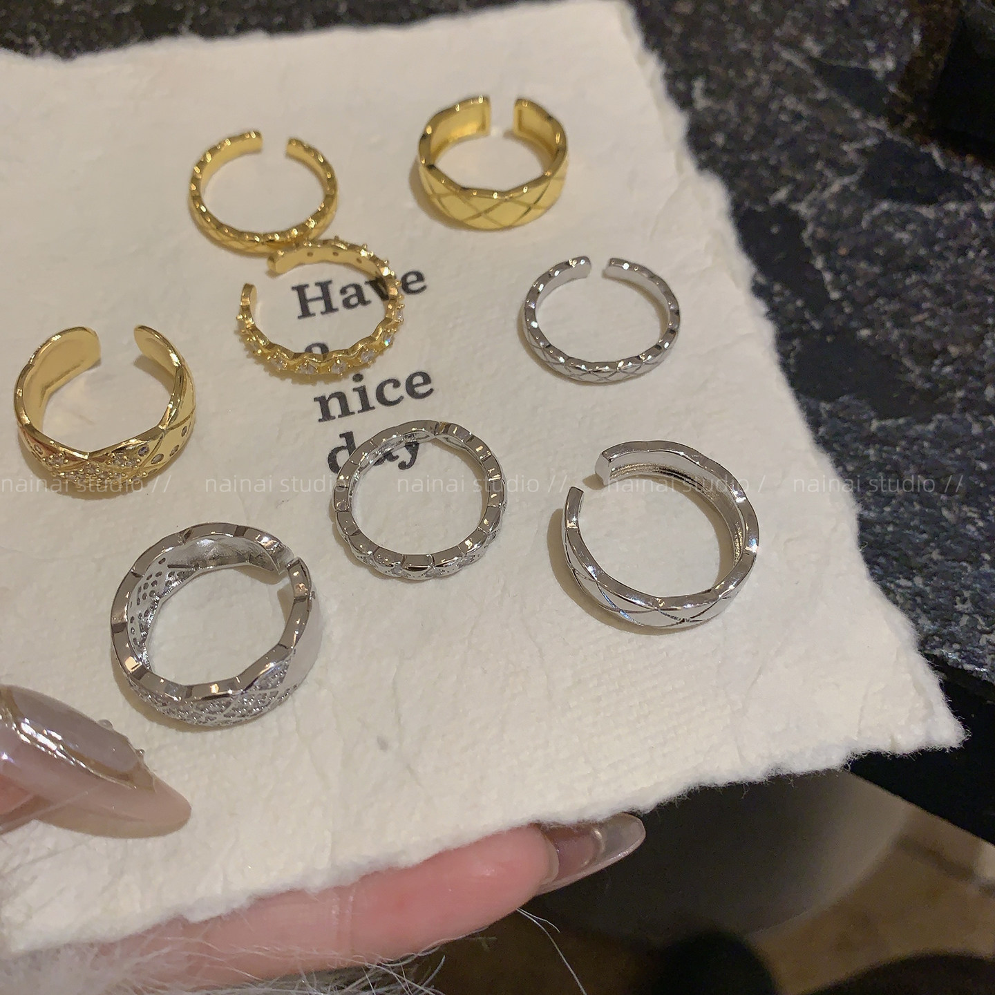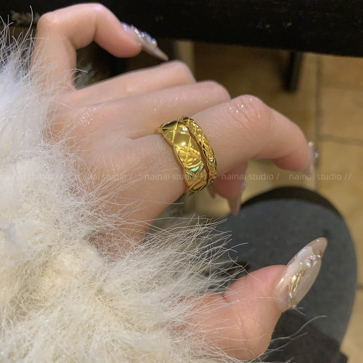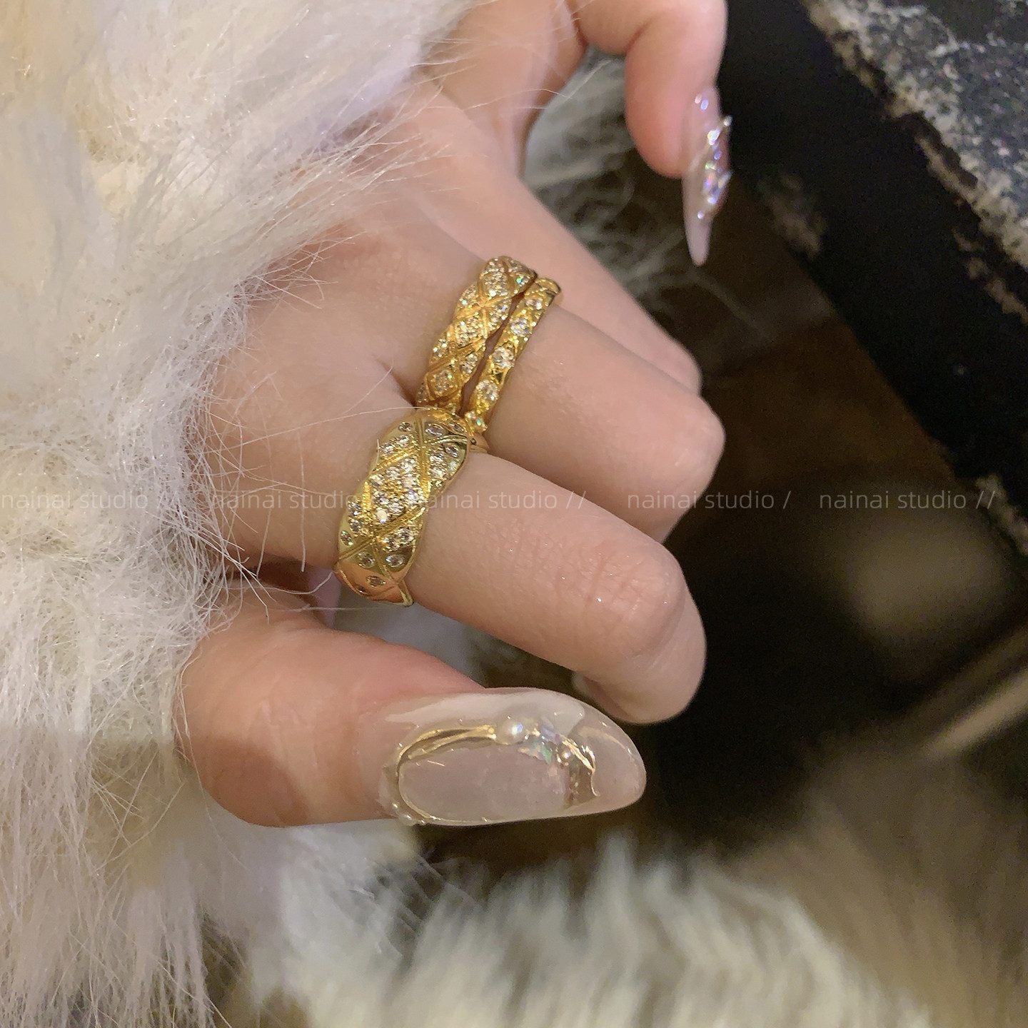 jennie同款小香风菱格戒指~镶钻高级感轻奢食指戒时髦情侣指环女