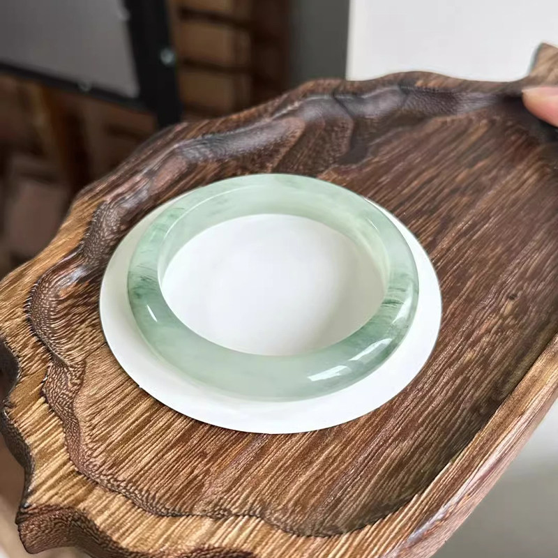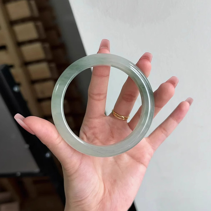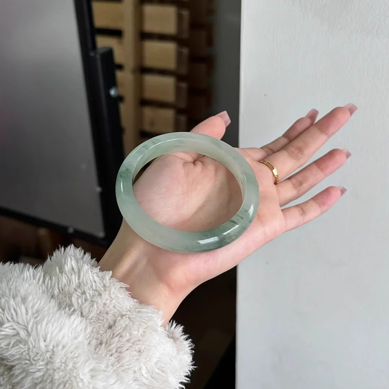 【无酸洗纯天然】新疆天山翠手镯飘花玉镯女款雪翠金丝玉圆条扁镯