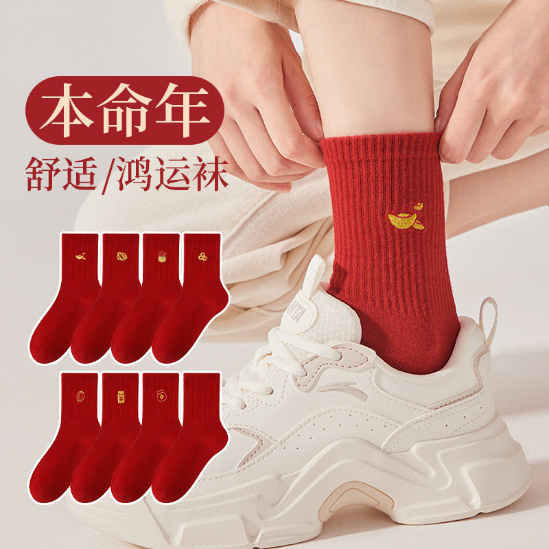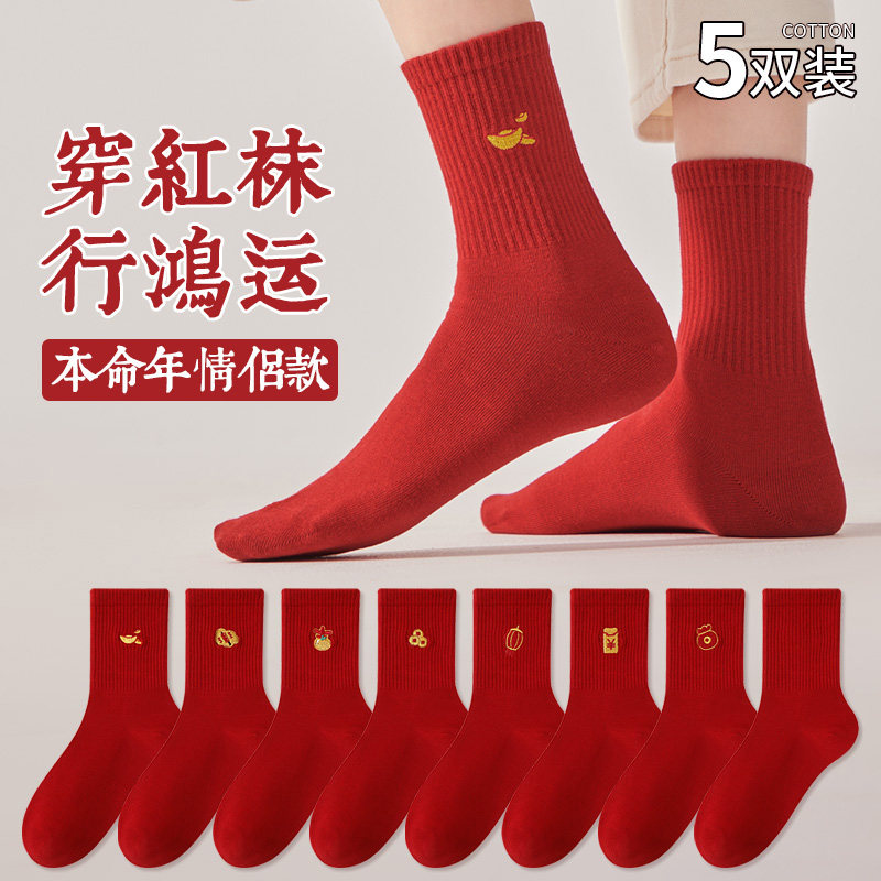 本命年红色袜子男女2025新款爆款秋冬中筒袜马年新年礼物长袜结婚