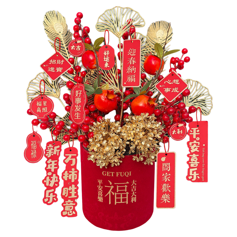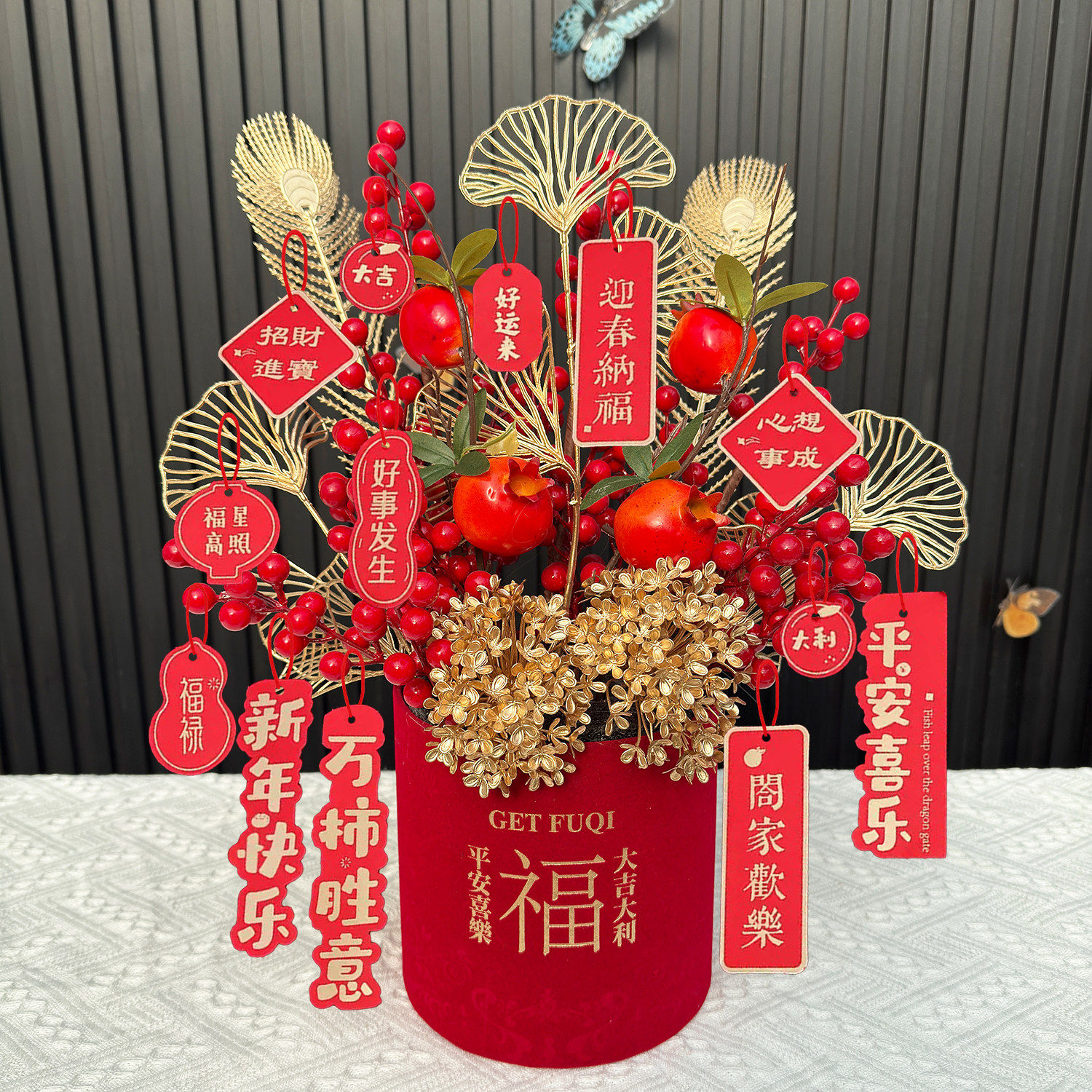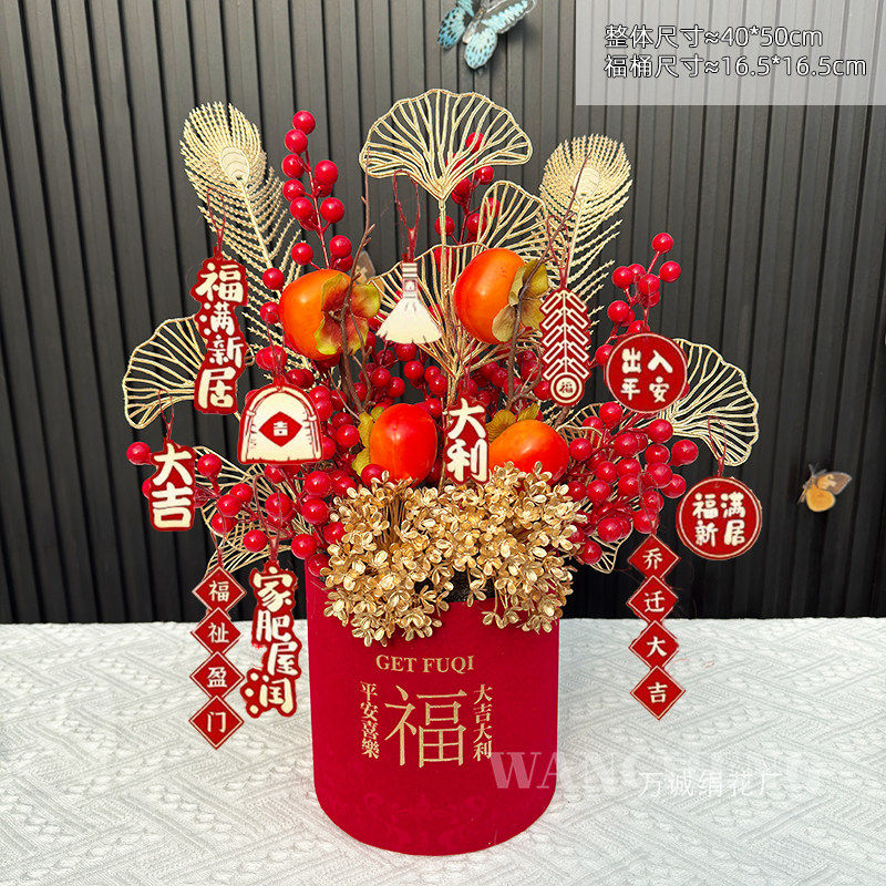 乔迁之喜福桶装饰摆设2026新年新居发财果仿真花春节过年布置摆件