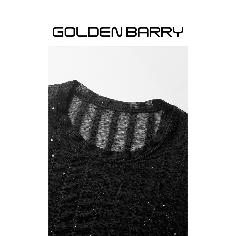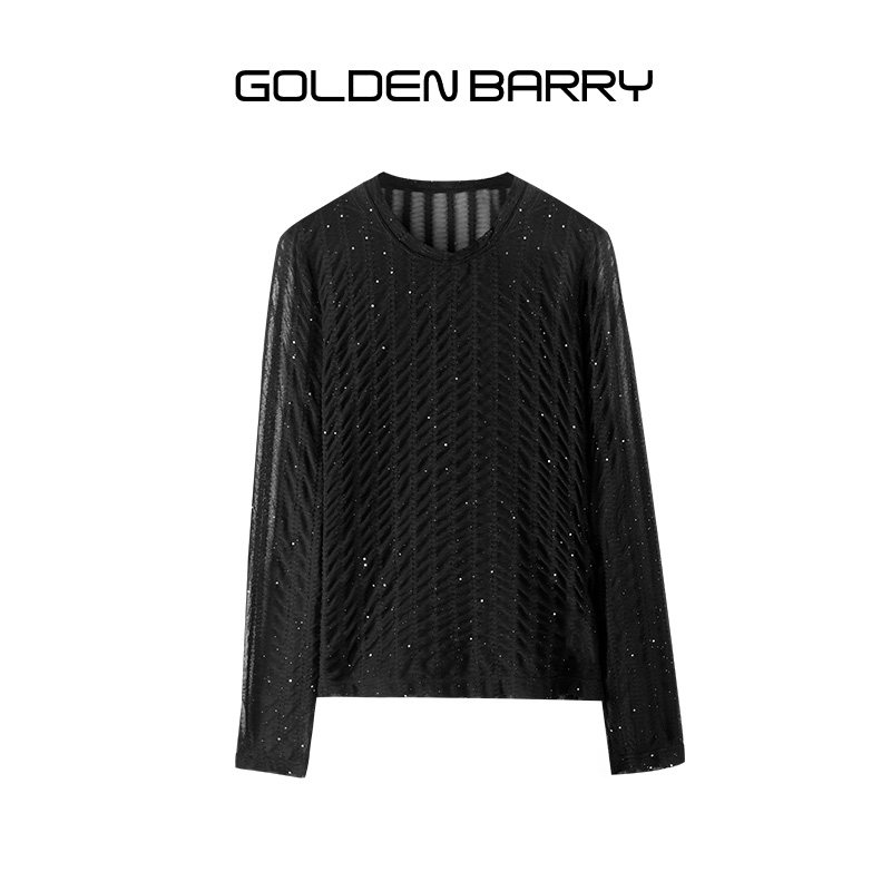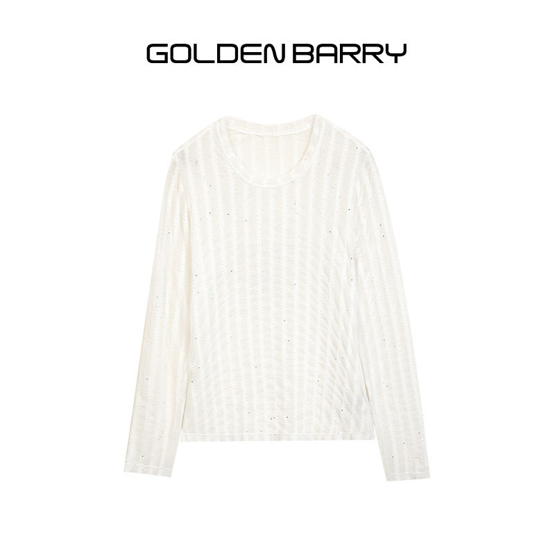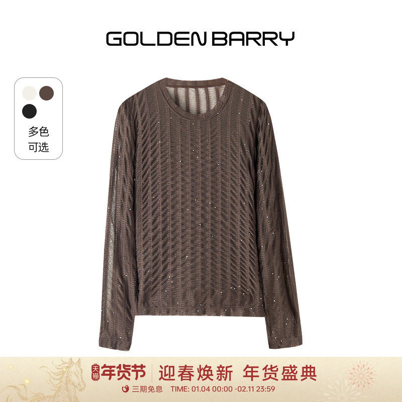 GOLDEN BARRY金和百瑞秋冬内搭温柔蕾丝圆领显瘦长袖打底衫204025