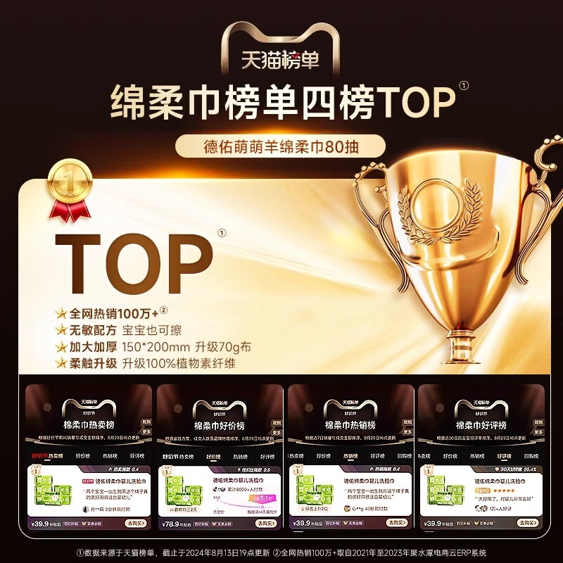 德佑绵柔巾洗脸巾婴儿专用干湿两用新生儿大包80抽擦脸巾绵柔清洁