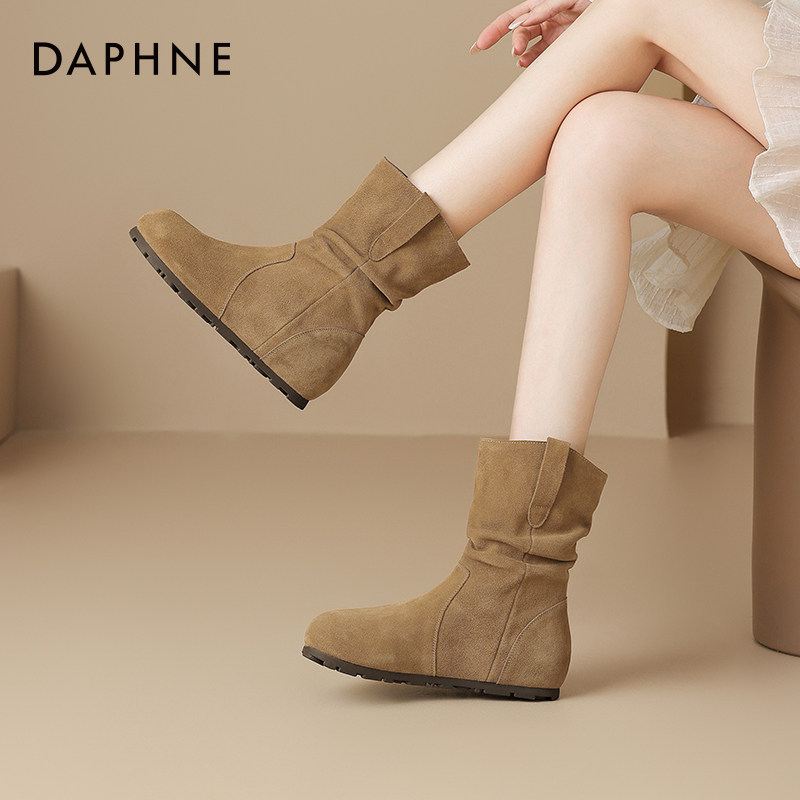 达芙妮勃肯短靴女2026新款春季美拉德春款中筒靴内增高堆堆马丁靴