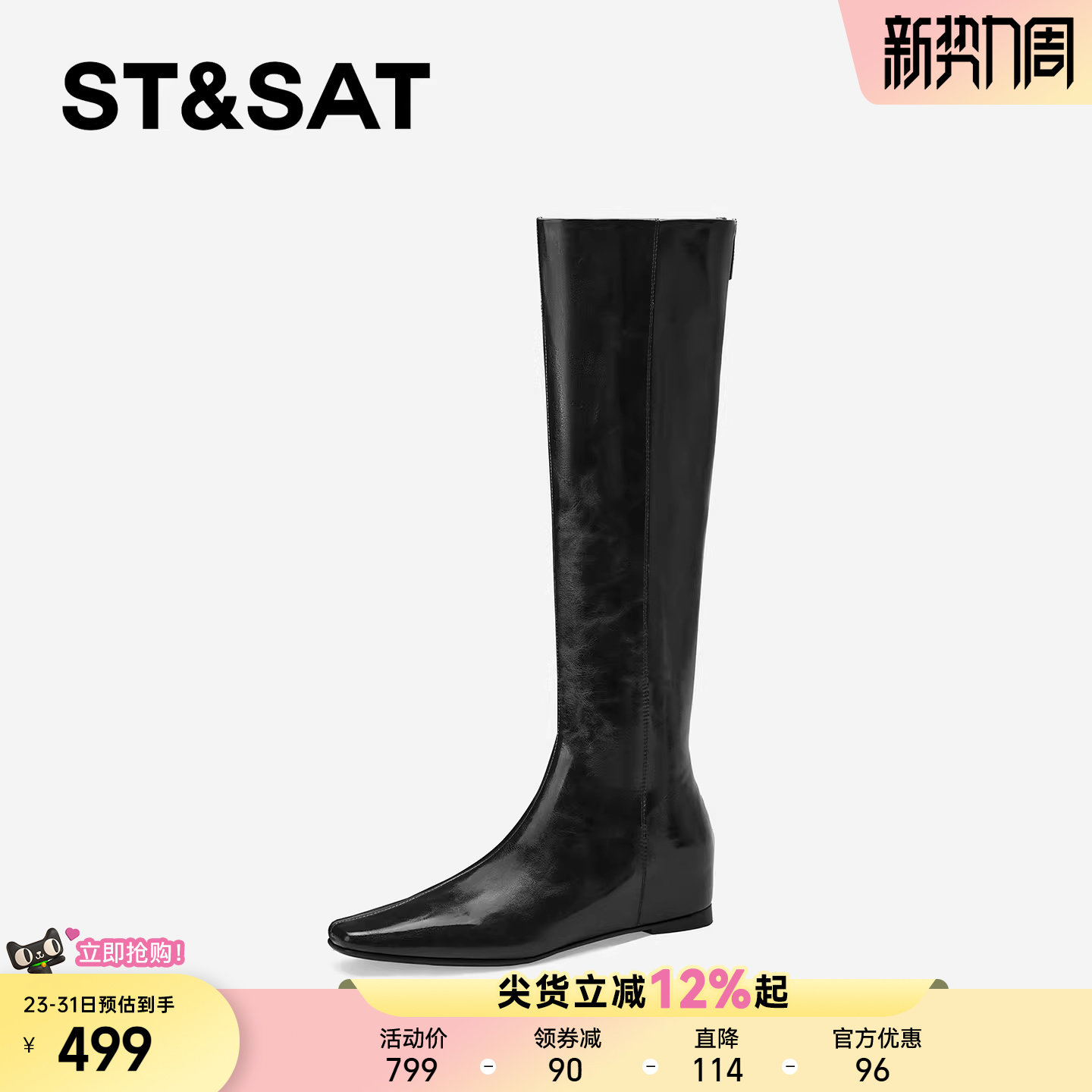 星期六美拉德骑士靴女2025方头内增高显瘦复古全真皮不过膝长靴子