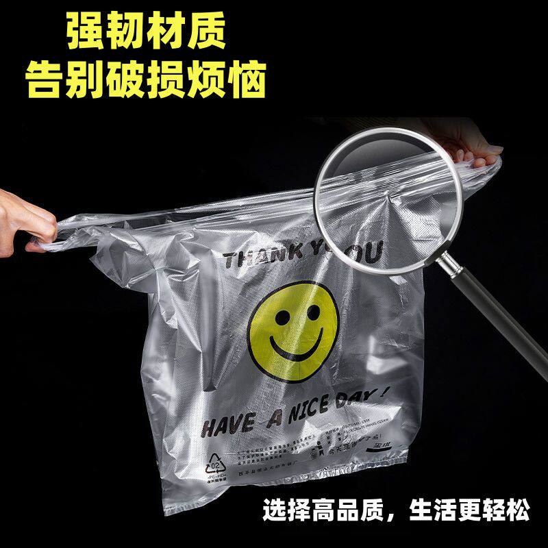 笑脸加厚透明塑料袋外卖垃圾袋商用打包袋购物袋方便手提袋子食品