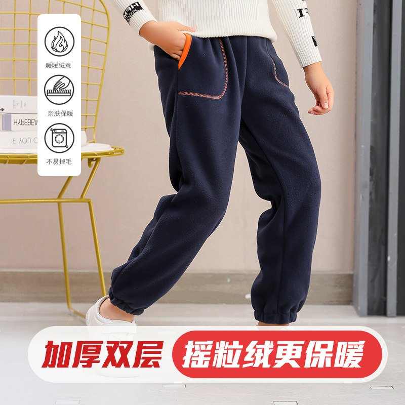 儿童裤子男童摇粒绒长裤抓绒保暖运动裤加绒加厚女童束脚裤秋冬季