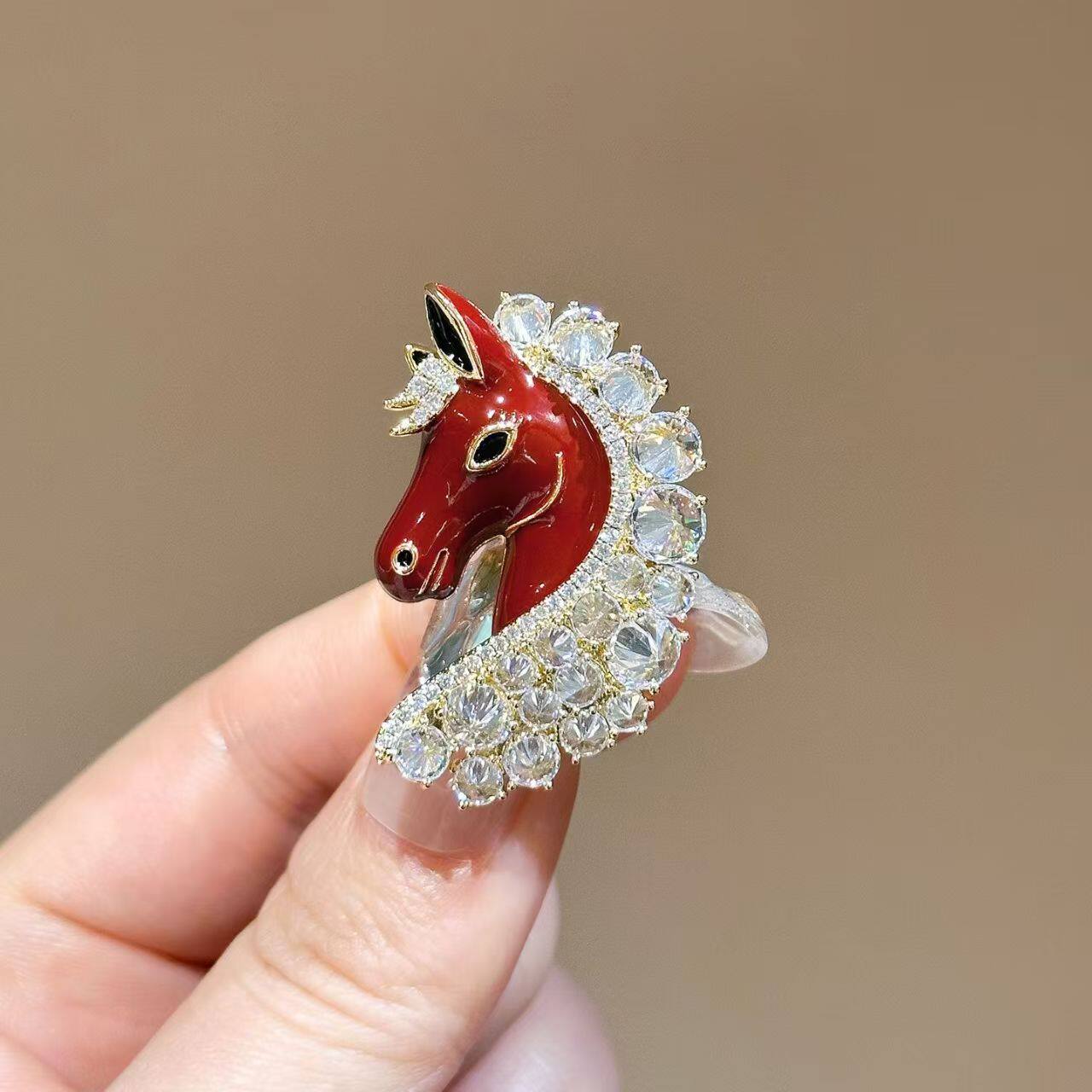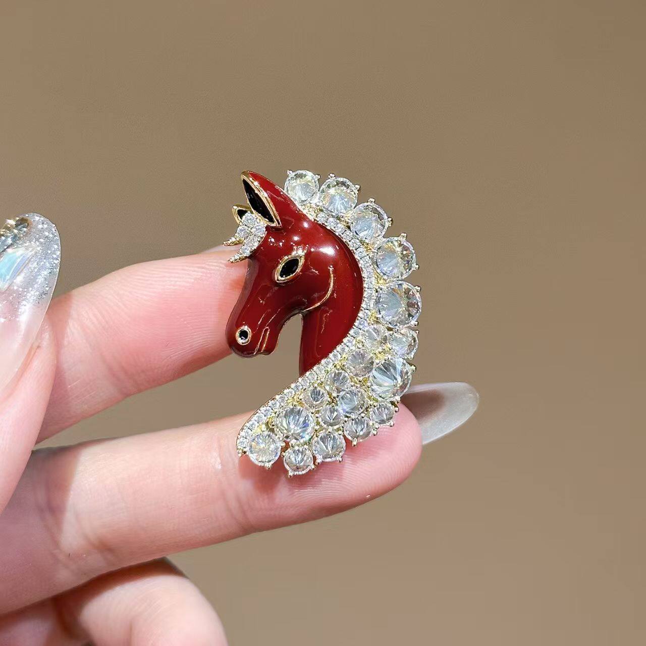 马首闪钻胸针生肖马2026新款本命年造型别针配饰设计高级感胸花女