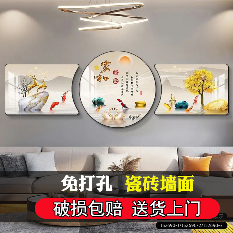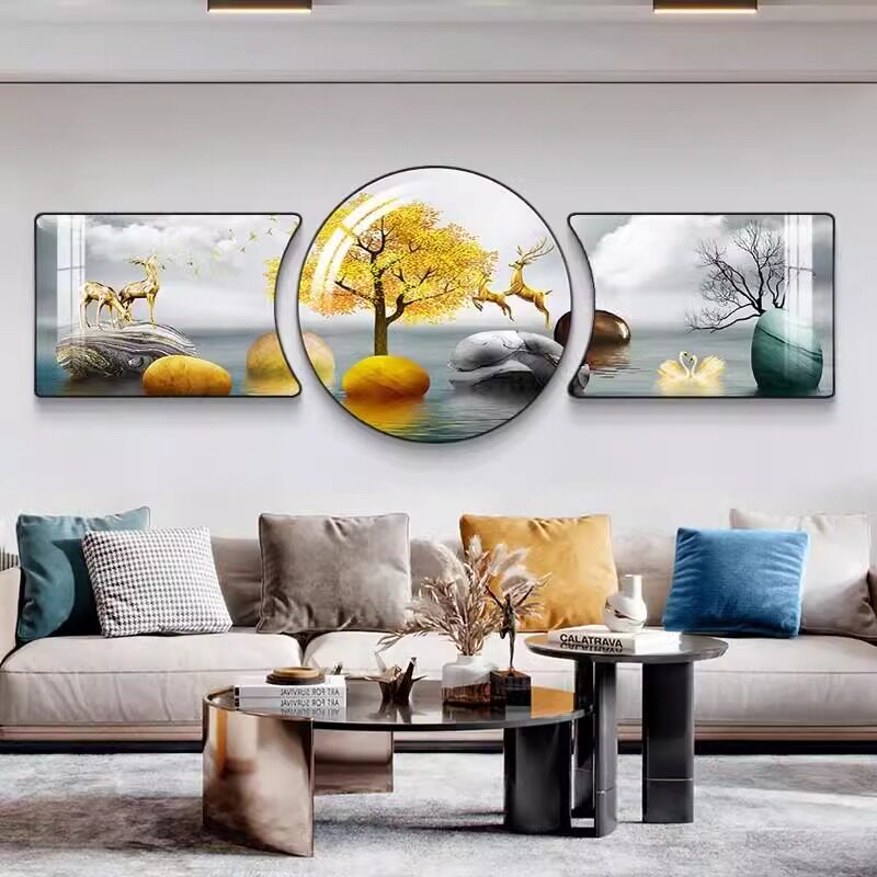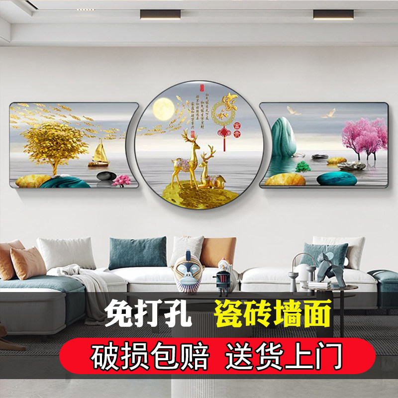 客厅装饰画现代简约沙发背景墙三联画墙画挂画轻奢晶瓷画壁画大气