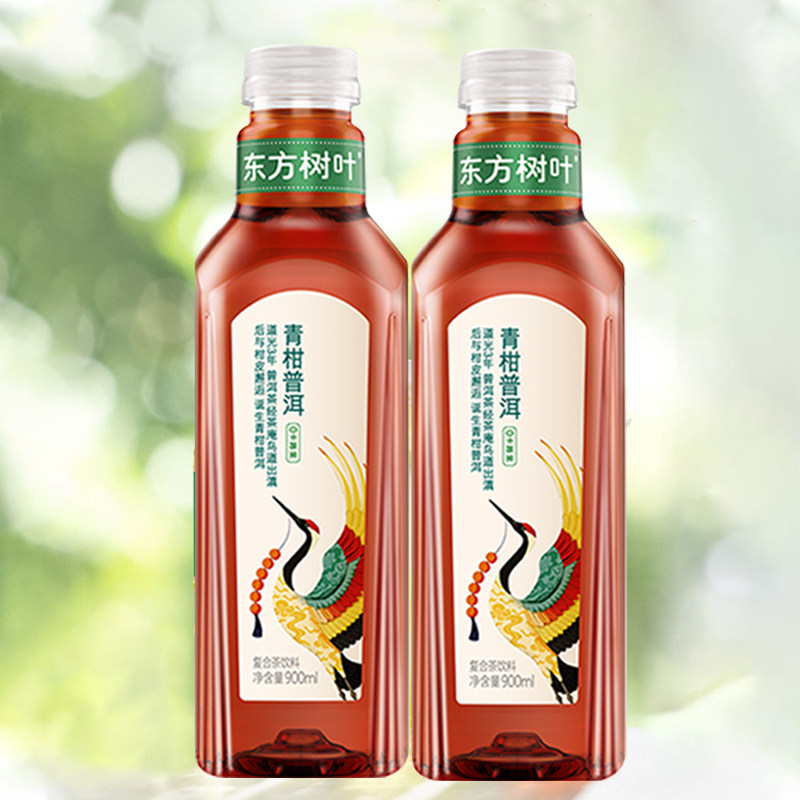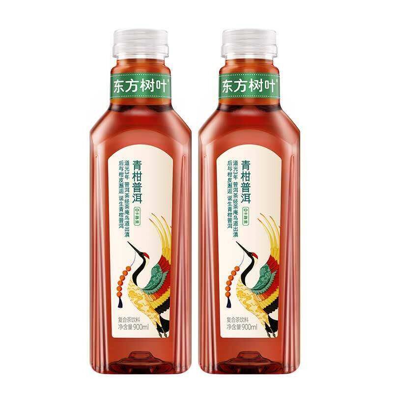农夫山泉东方树叶青柑普洱900ml*2瓶大瓶装0糖0卡0脂茶饮料茉莉花