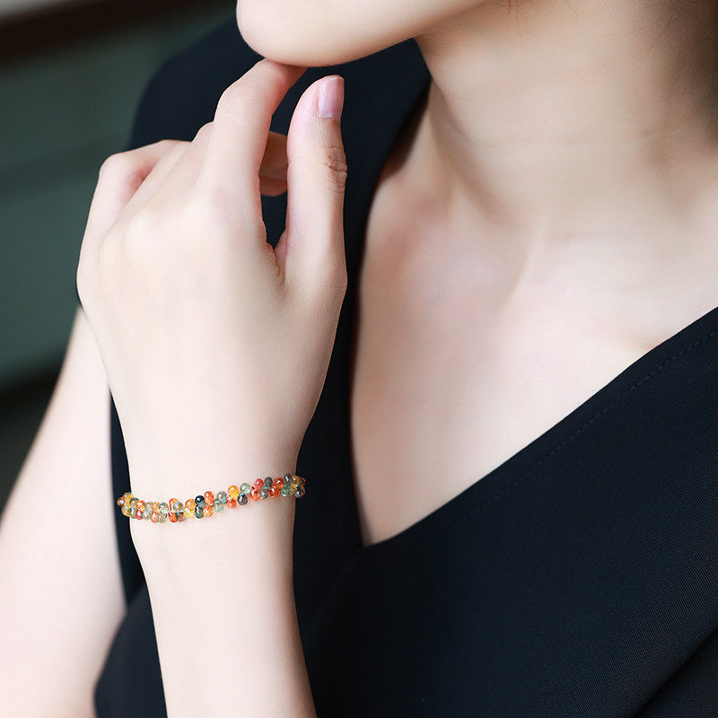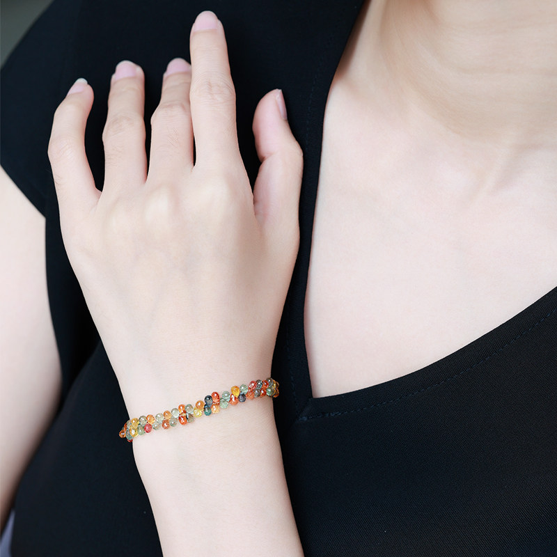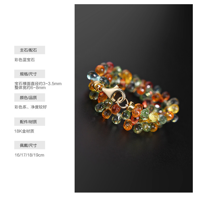 若华珠宝阳光玫瑰 天然彩色蓝宝石手链女18K金彩宝串珠手串定制