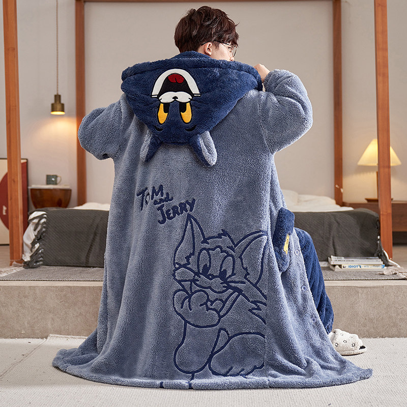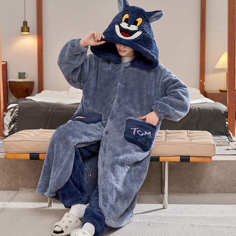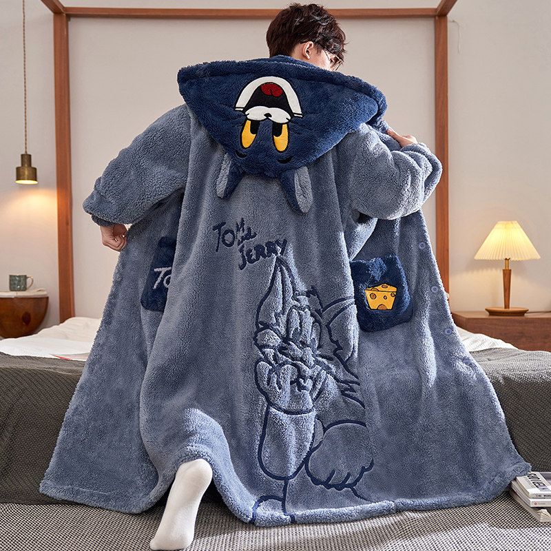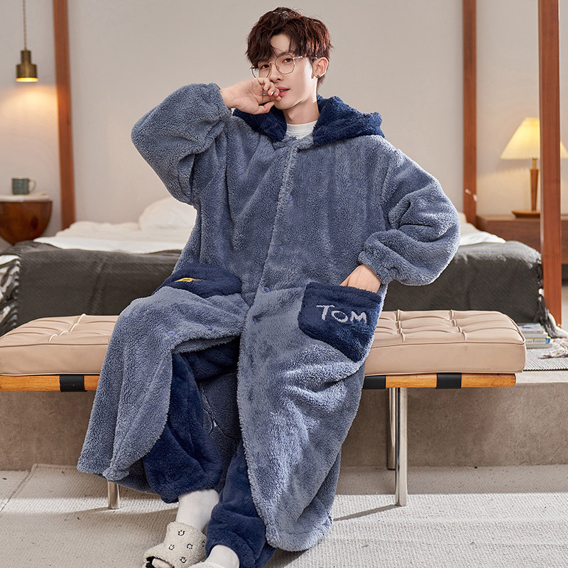 男士睡衣秋冬款珊瑚绒加厚加绒大码胖哥哥睡袍冬季学生家居服套装