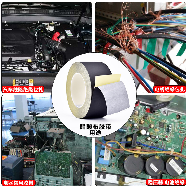 阻燃醋酸黑色胶布 强力缠绕液晶屏维修屏线维修汽车电线耐高温绝缘线束高频变器电线包扎用醋酸贴胶带