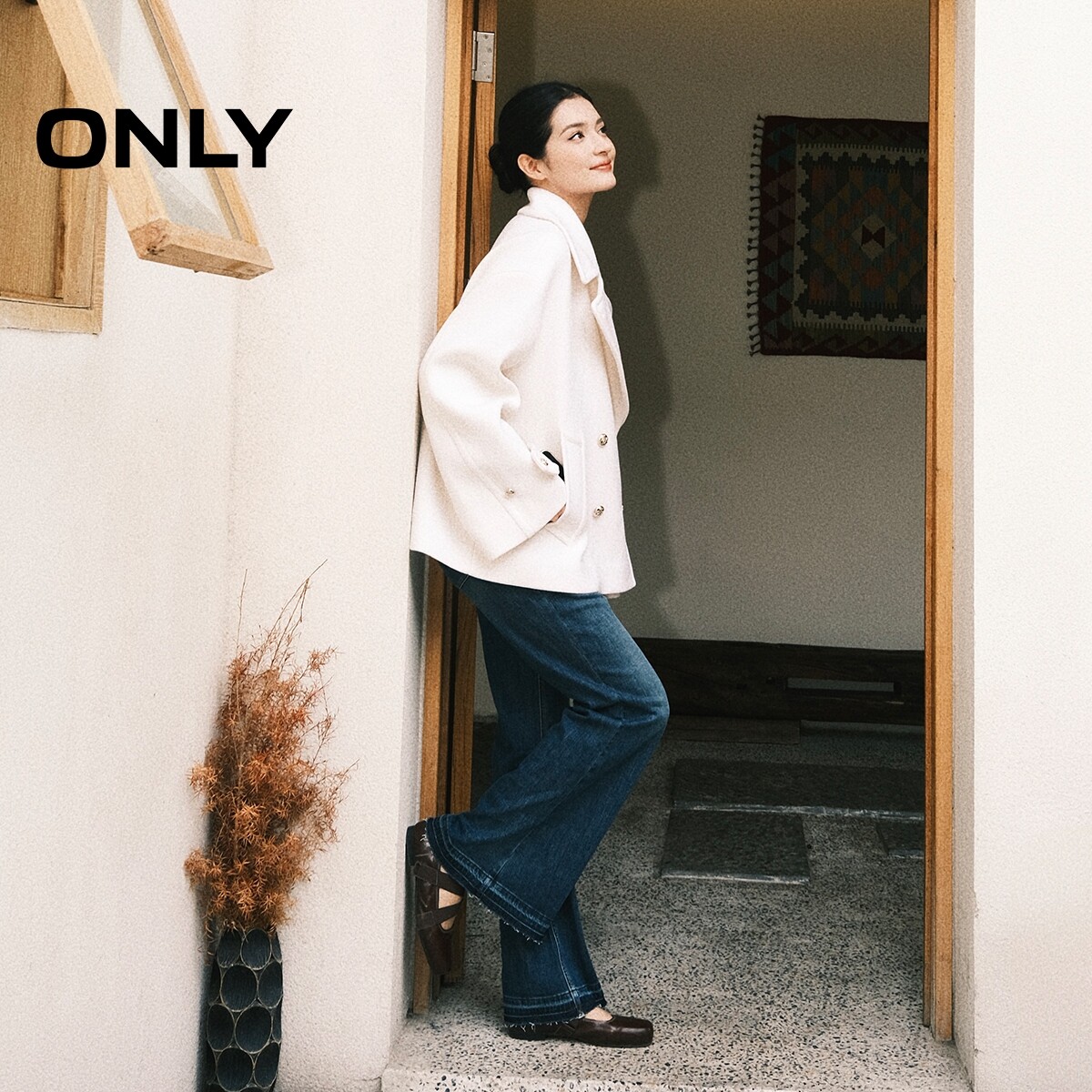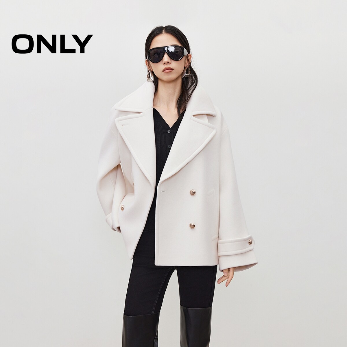 【ONLY奥莱】春款宽松显瘦立体A字廓形加宽平驳领落肩毛呢大衣女