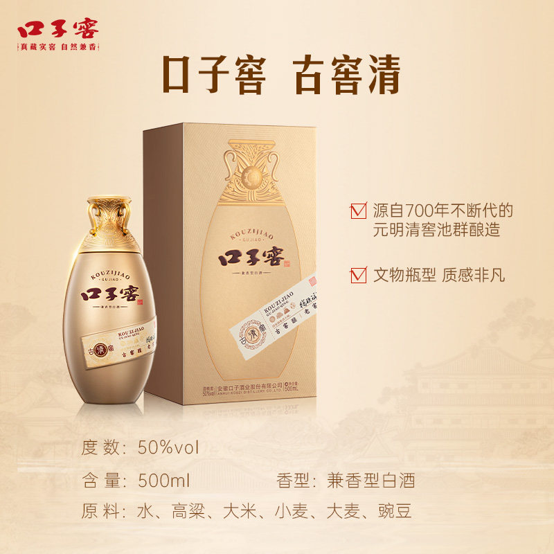 口子窖 古窖清 兼香型 50°500ml*2瓶 安徽白酒旗舰店正品 送长辈
