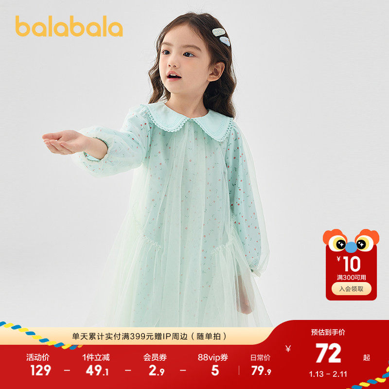 【balaOne】巴拉巴拉童装女童连衣裙2025新款春装网纱裙甜美洋气