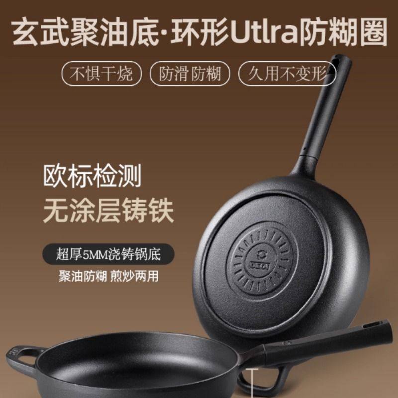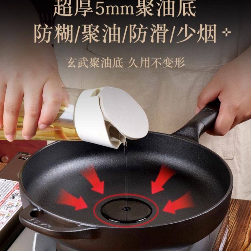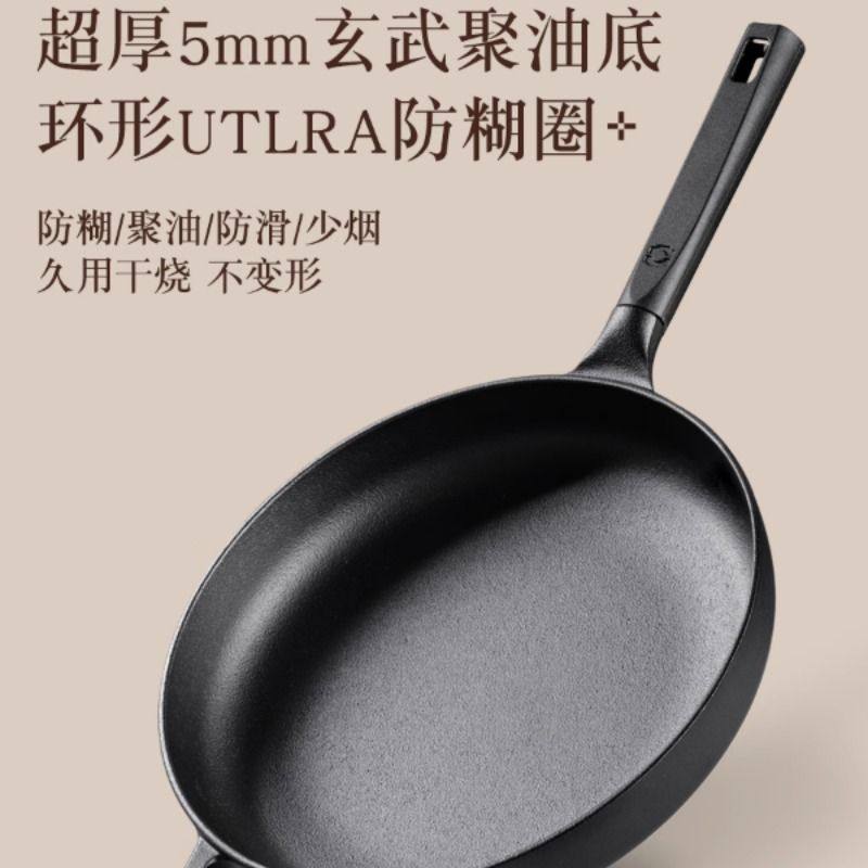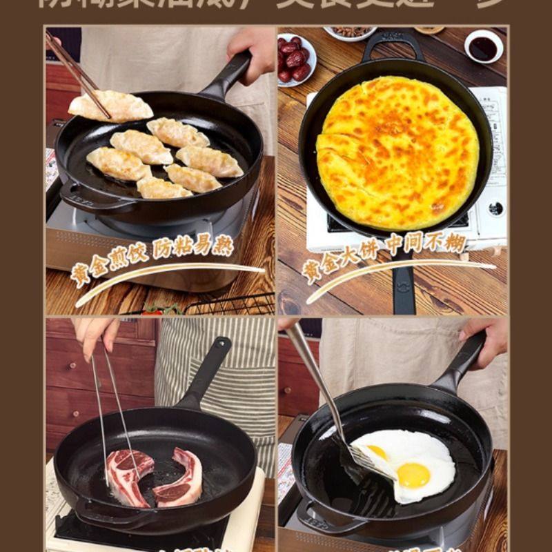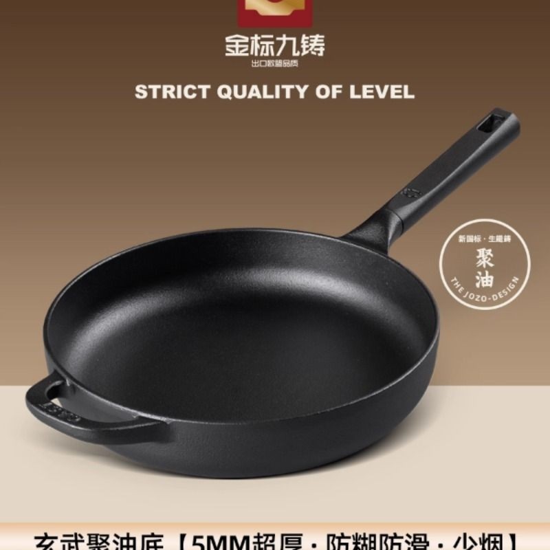 九铸聚油煎锅24/26/28cm铸铁锅平底煎炒锅无涂层不粘锅燃气灶家用