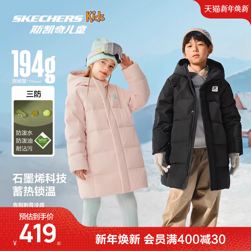 Skechers斯凯奇儿童中长款羽绒外套冬季童装男女童三防保暖羽绒服