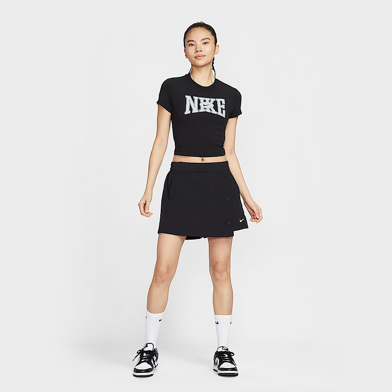 NIKE耐克梭织短裤女25夏新款运动休闲刺绣小标排扣裙裤HM6980-010