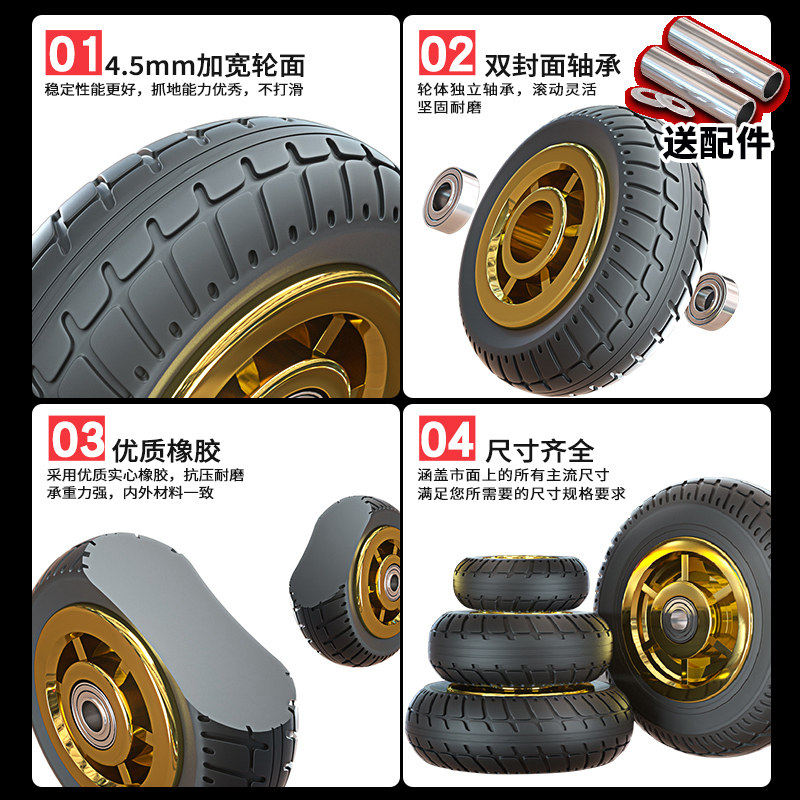 橡胶静音万向轮推车轮子4寸5寸6寸重型单轮轱辘3寸手推车轮子大全