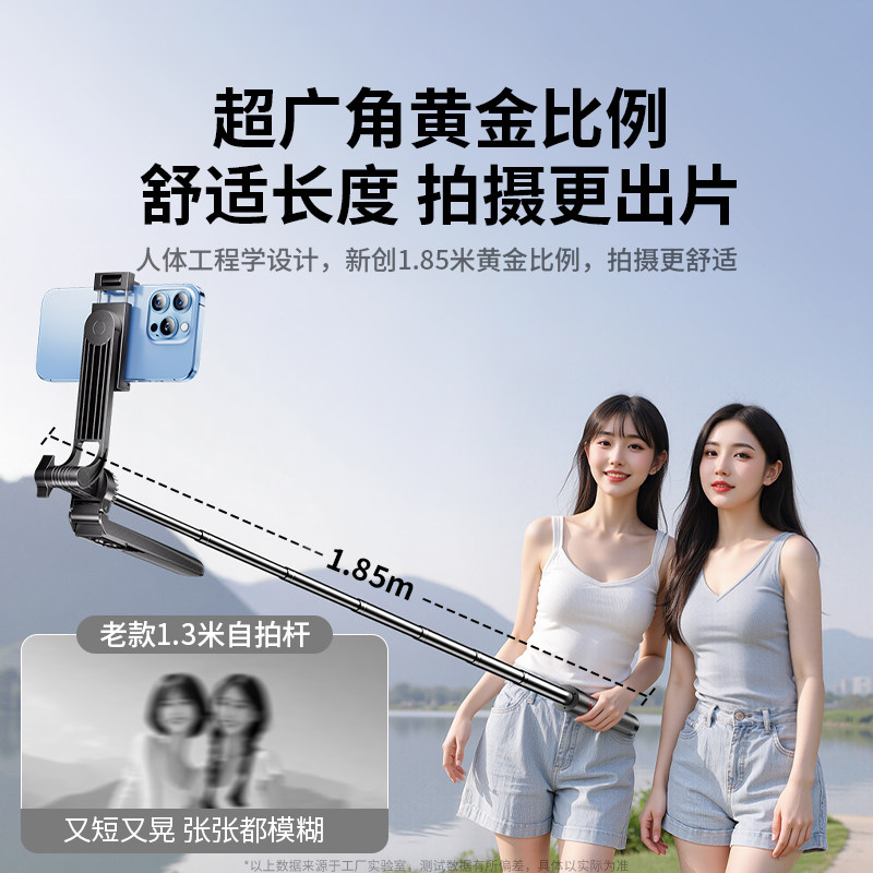 佑粒新款1.8m自拍杆防抖落地三脚架手机相机通用旅游便携手持伸缩支架拍照摄影自拍神器蓝牙远程双机位