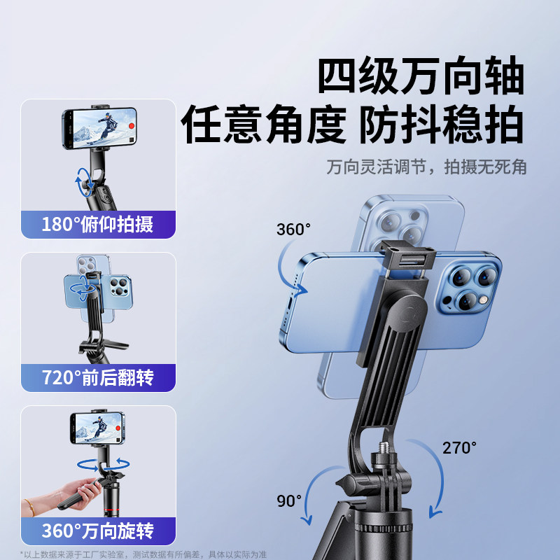 叠品A21P防抖手机户外拍摄支架自拍杆2025新款通用三脚架360旋转直播拍照神器抖音专用蓝牙一体式金属稳定器