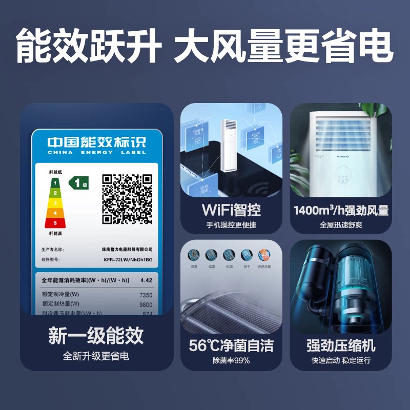 【Gree/格力官方】一级能效变频冷暖3匹客厅立式柜机家用空调云佳