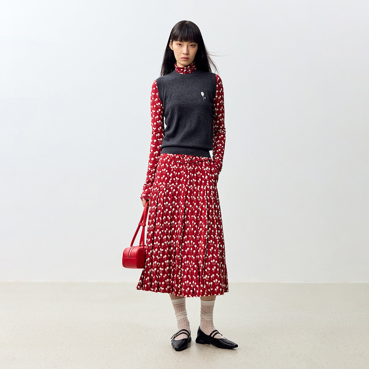 【LILY X 庄晓君】商场同款2024秋新款满花气球A字百褶裙半身裙女