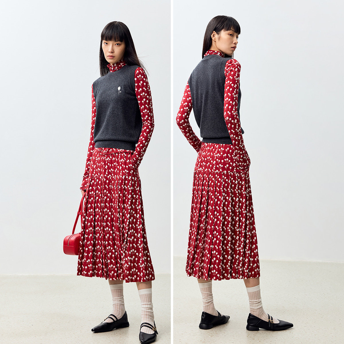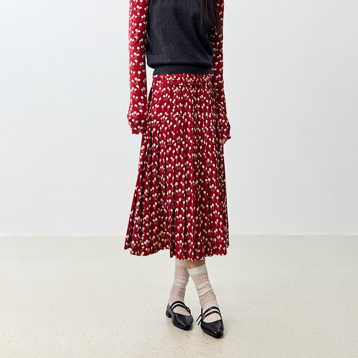 细腻百褶裙型-配合膝下裙长有效遮肉显瘦