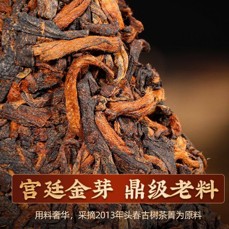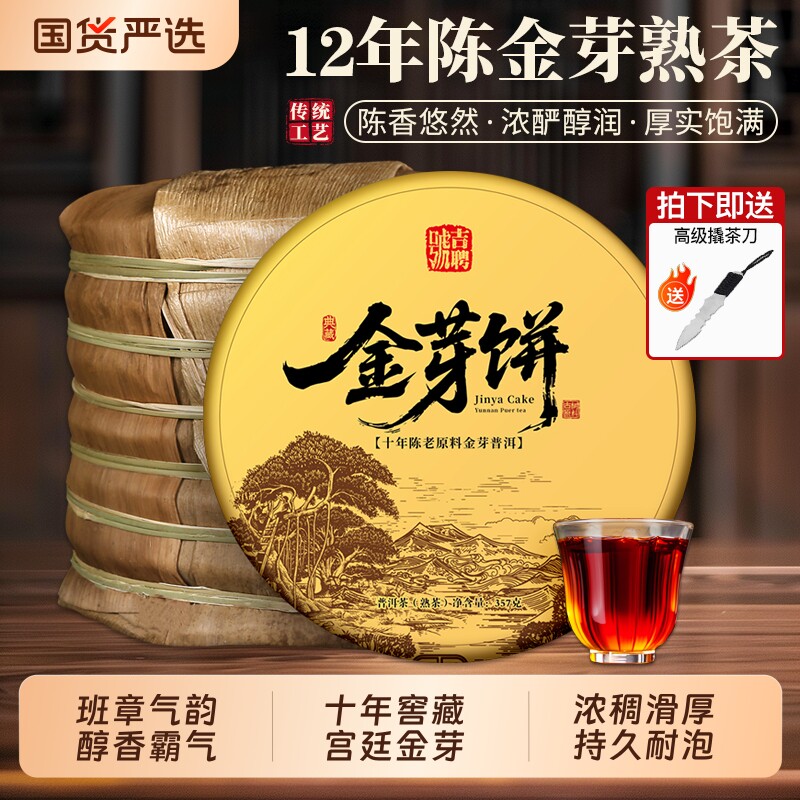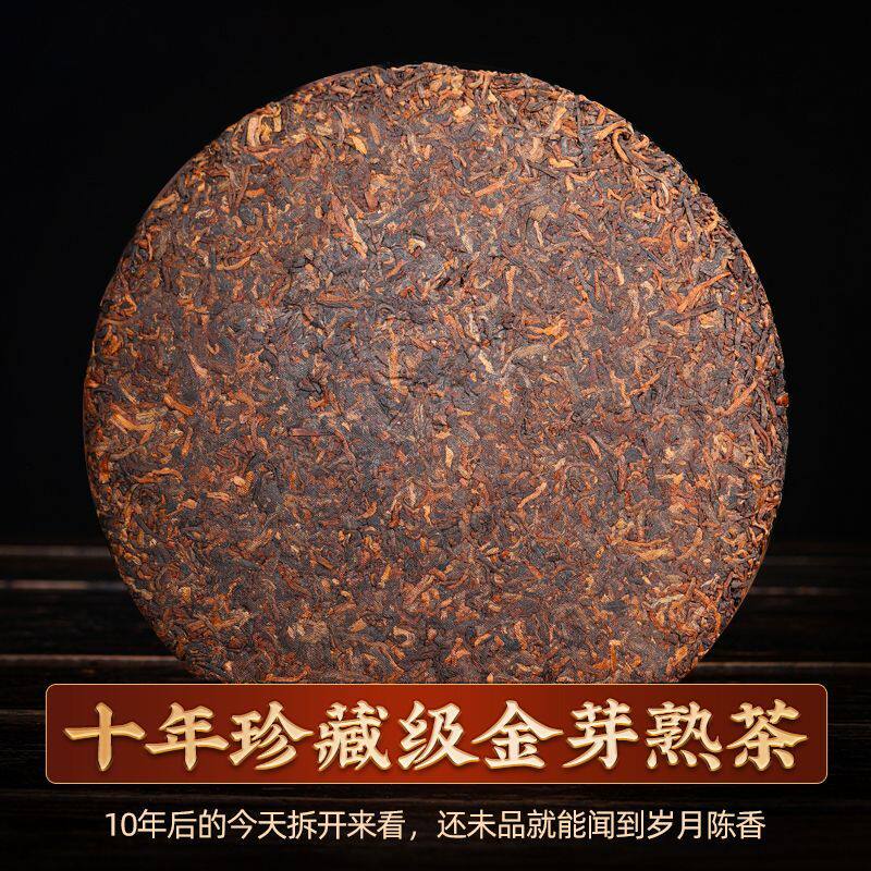 班章金芽饼普洱茶熟茶十年以上宫廷七子饼古树茶饼熟茶叶窖藏生态