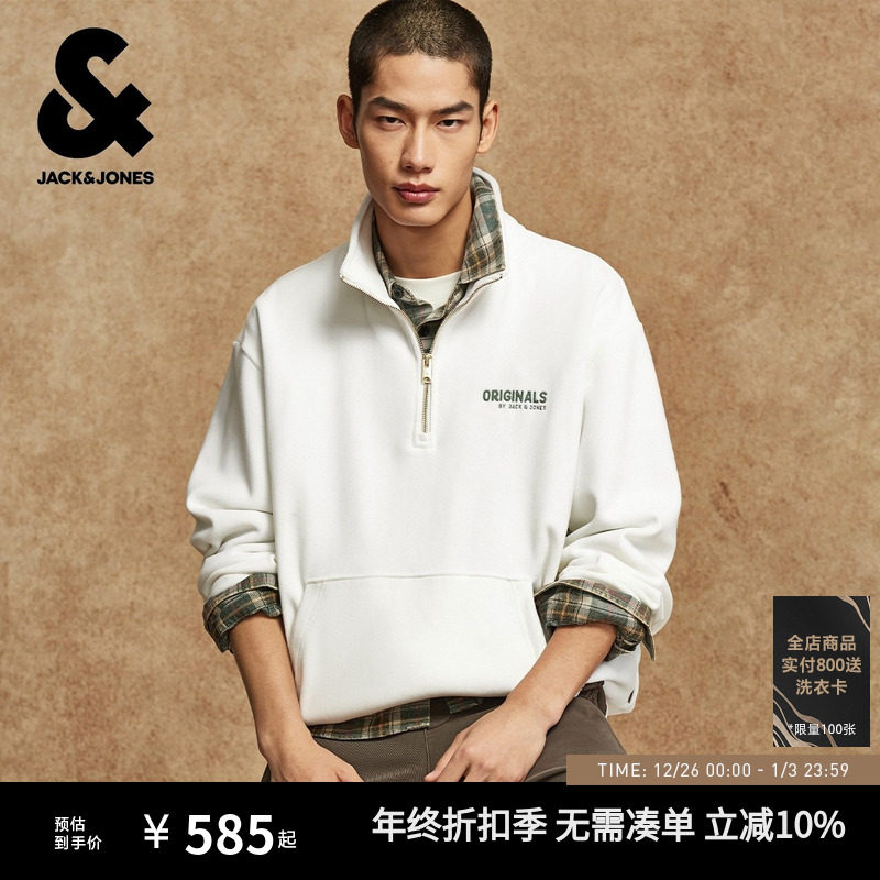 杰克琼斯男装冬季卫衣2025年新款半高领绒感面料字母刺绣上衣