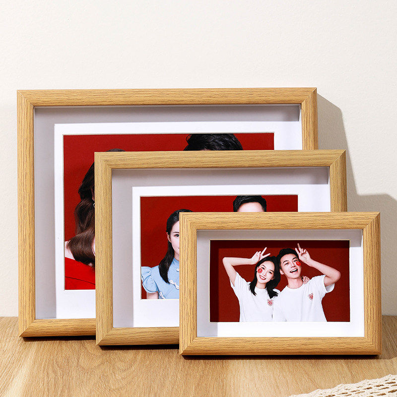 结婚登记照摆台木质相框空框6寸六8证件婚纱照洗照片做成中空卡纸