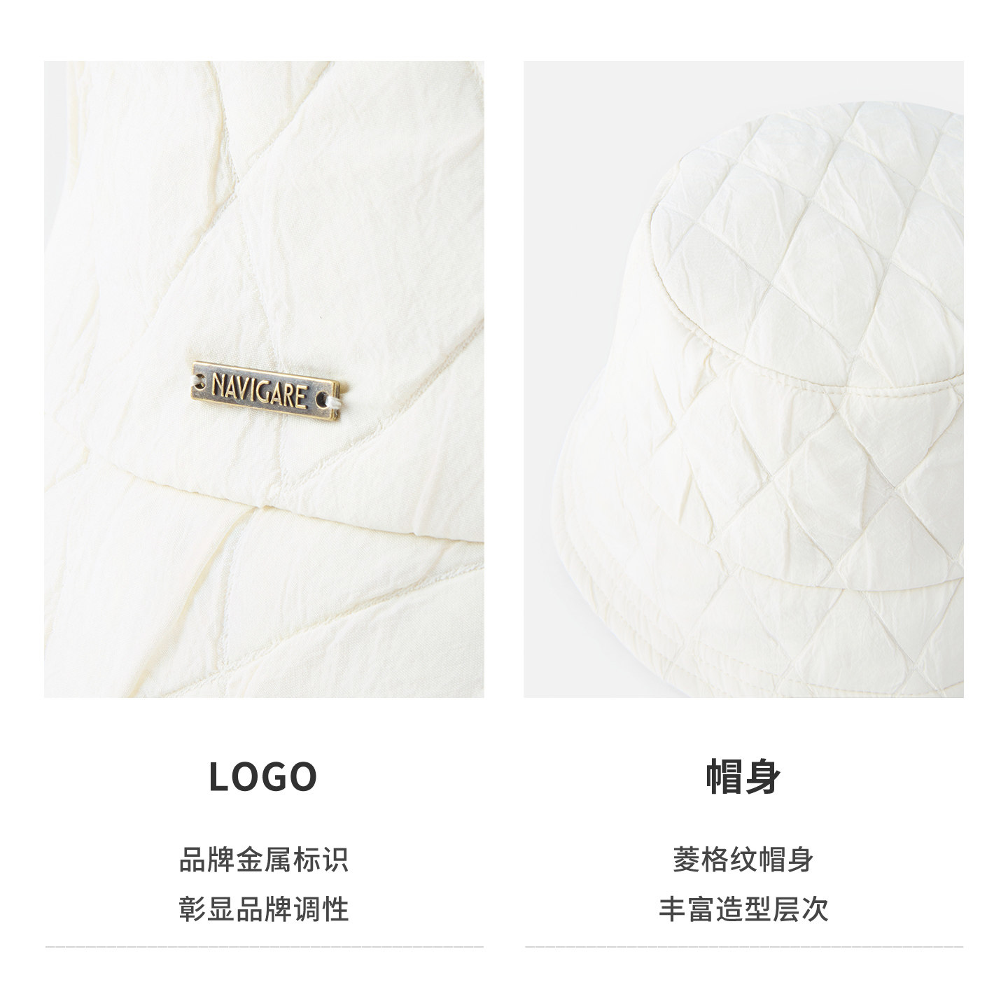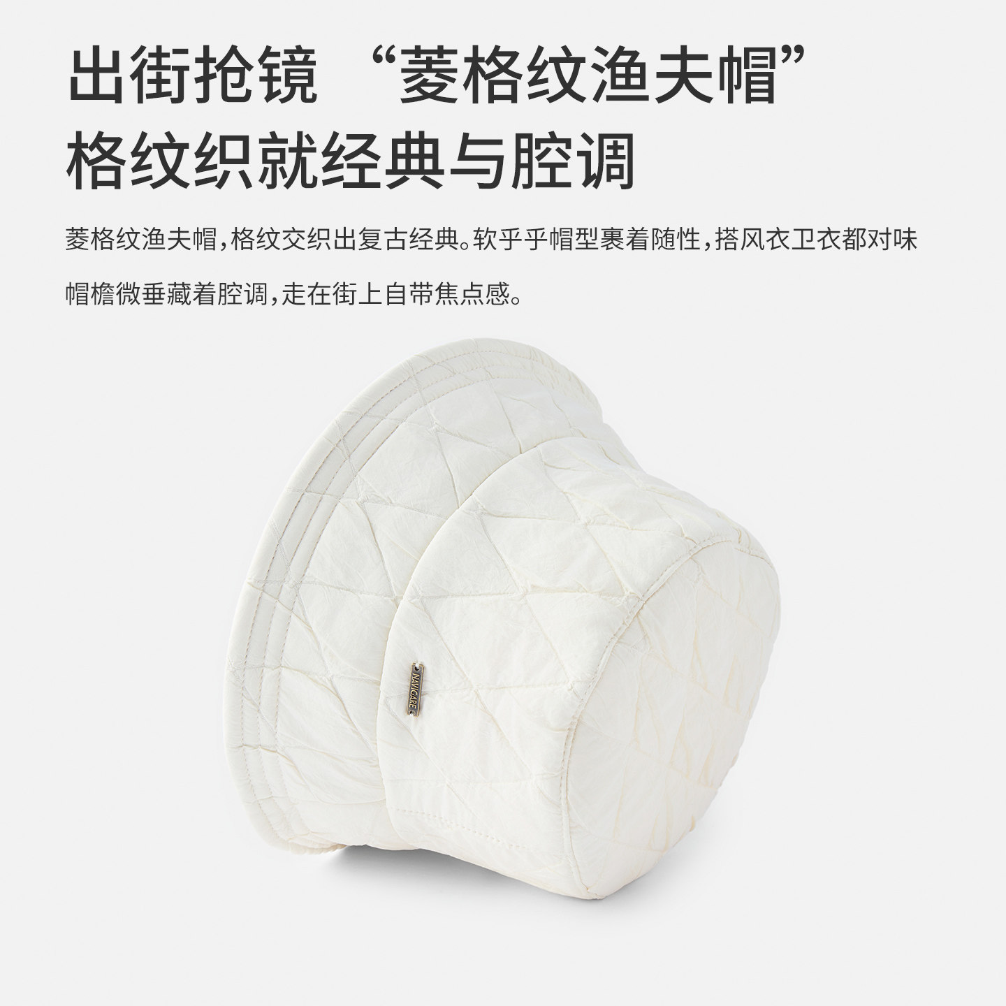 Navigare意大利小帆船休闲棱格纹渔夫帽男女同款透气白色平顶帽