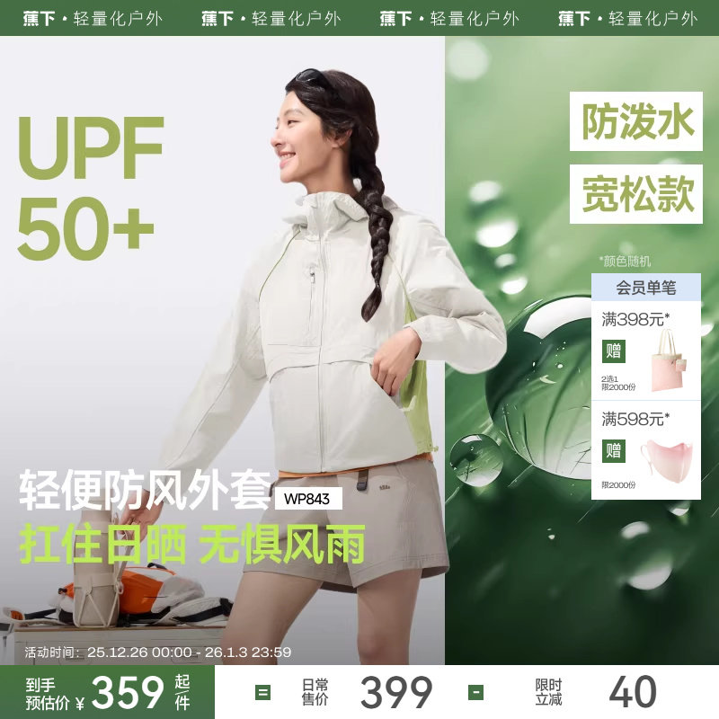 蕉下女士防风外套春薄款户外防泼水透气防晒衣休闲夹克连帽运动服