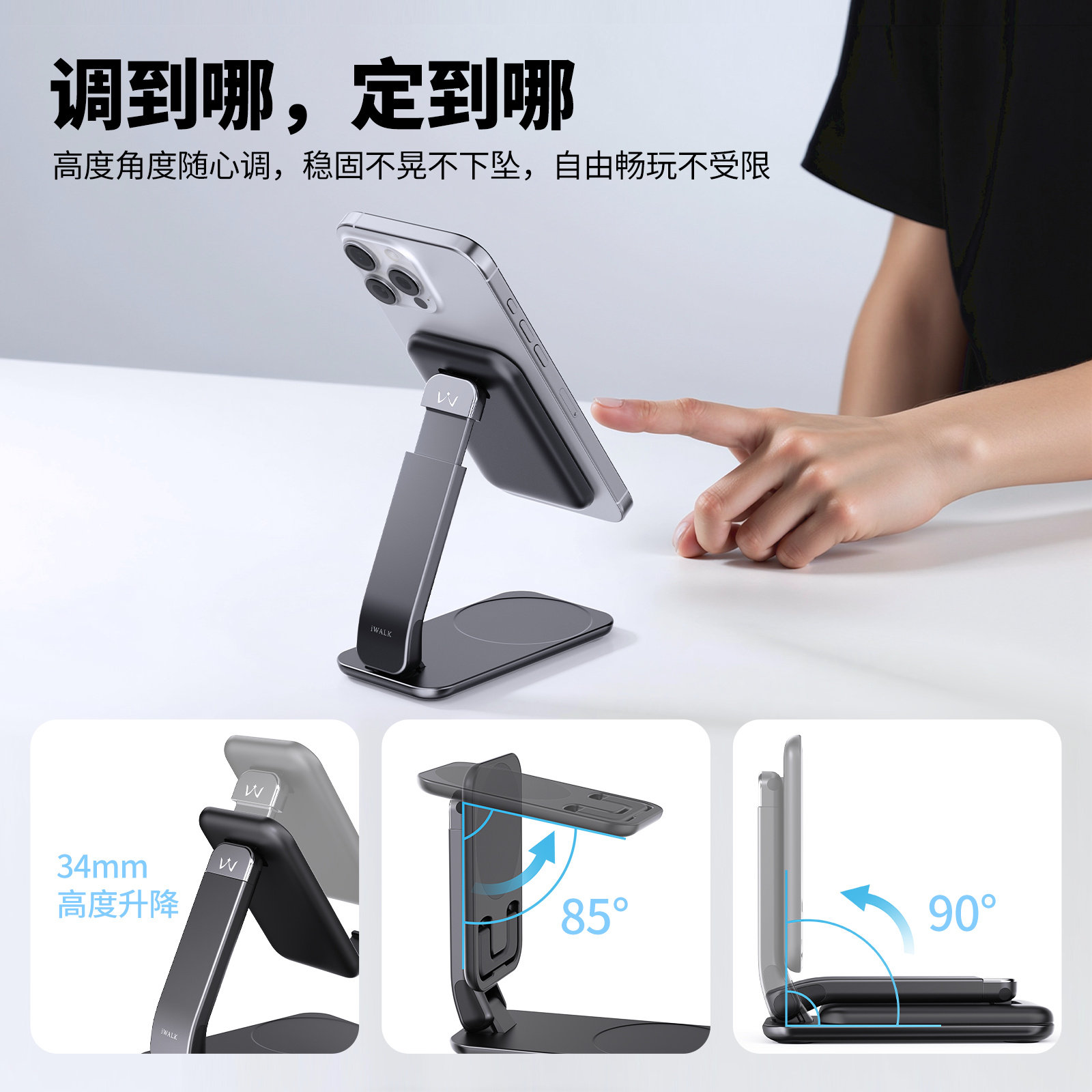 iWALK爱沃可手机支架磁吸可折叠升降高端桌面床头手机座iPad磁吸支架直播拍摄神器可爱手机架便携平板手机夹