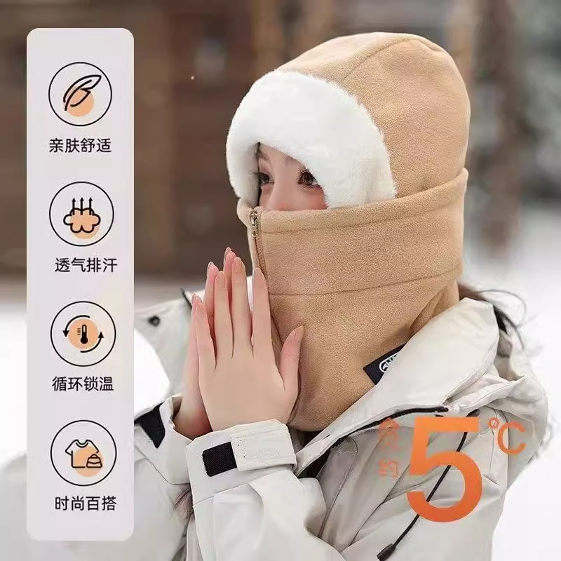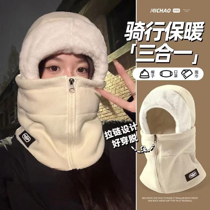 防风帽子男秋冬季骑车防风面罩围脖一体电动车保暖头盔内胆头套女