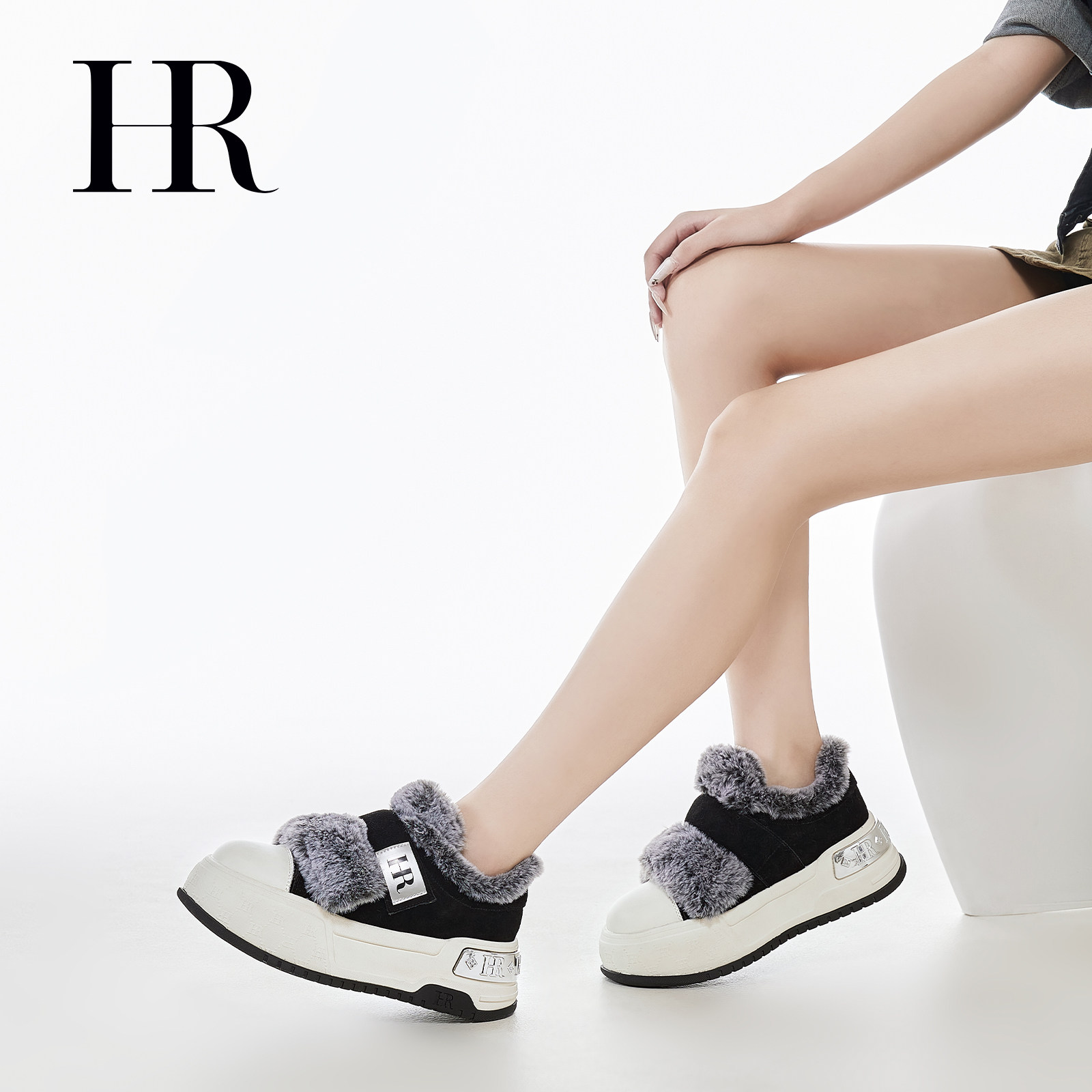 HR赫莲娜毛毛鞋2025冬季新款休闲女鞋加绒厚底舒适保暖时尚雪地靴