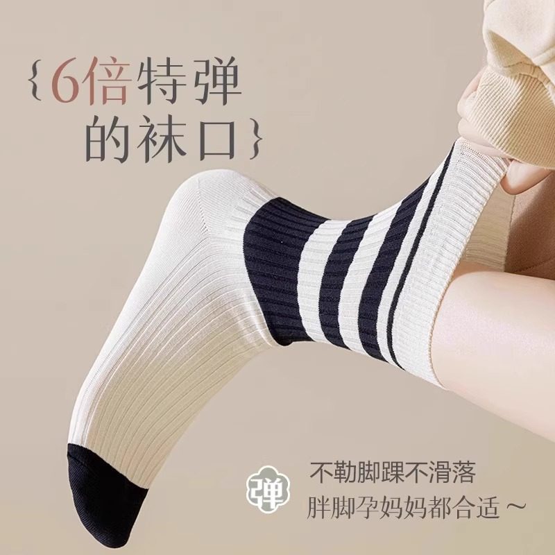 诸暨袜子美拉德女中筒袜秋冬季70%棉吸汗春秋女士防臭袜条纹优质