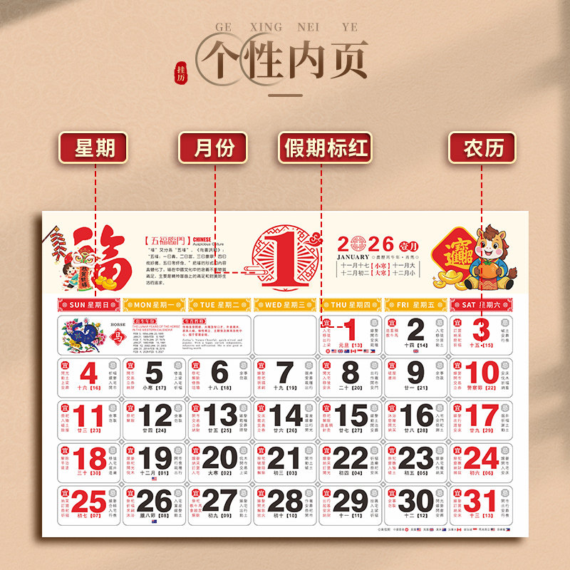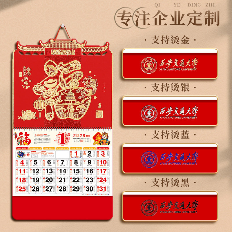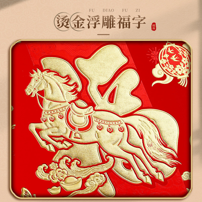 2026年挂历定制新款家用挂墙月历福字大六开浮雕福牌撕历马年日历商务公司新年创意单位礼品订做广告logo定做