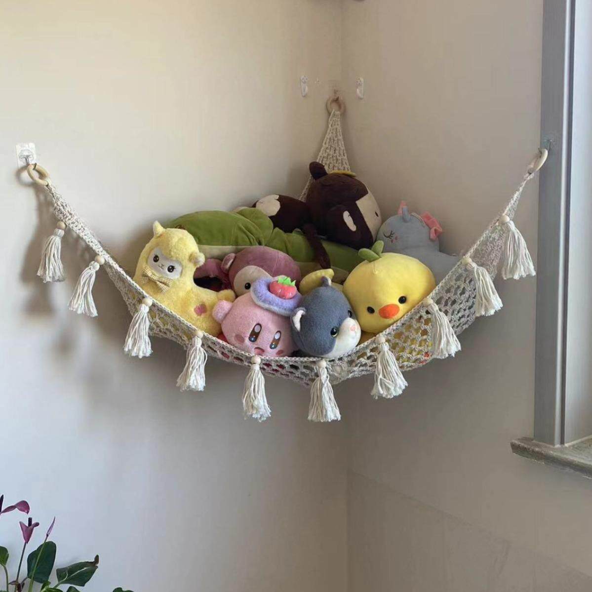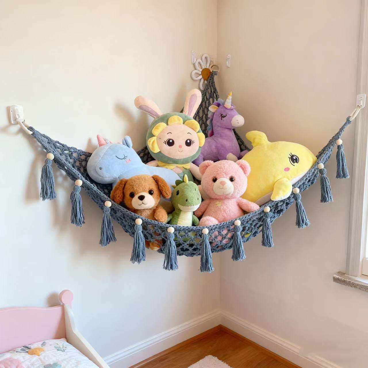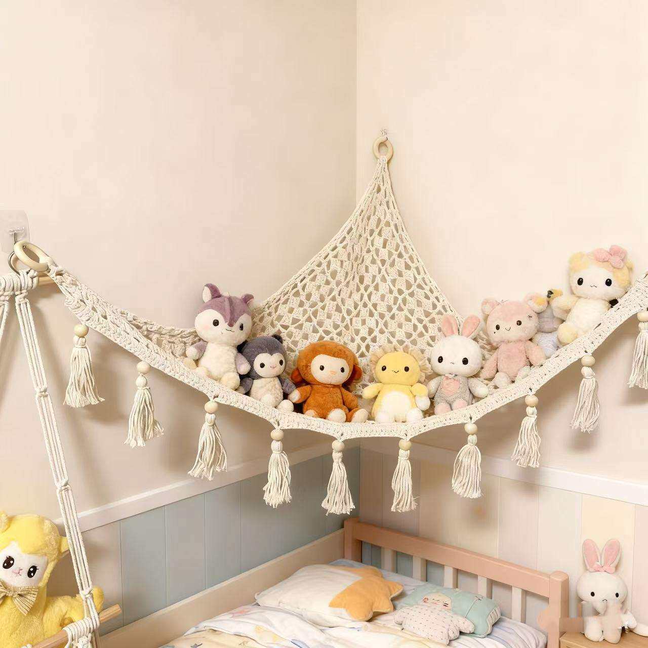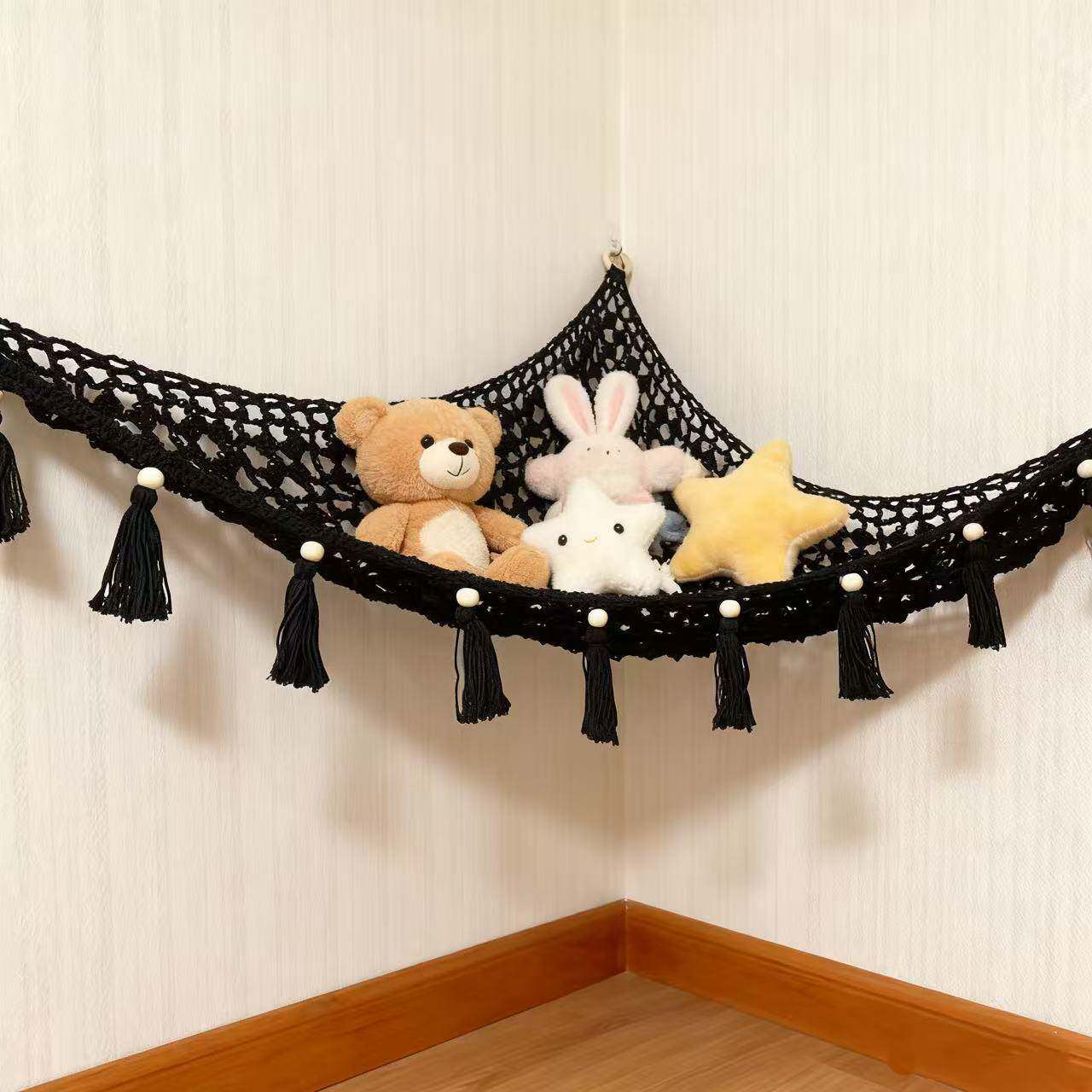 跨境三角玩具网兜手工编织棉绳卧室儿童房墙角玩具收纳网吊床