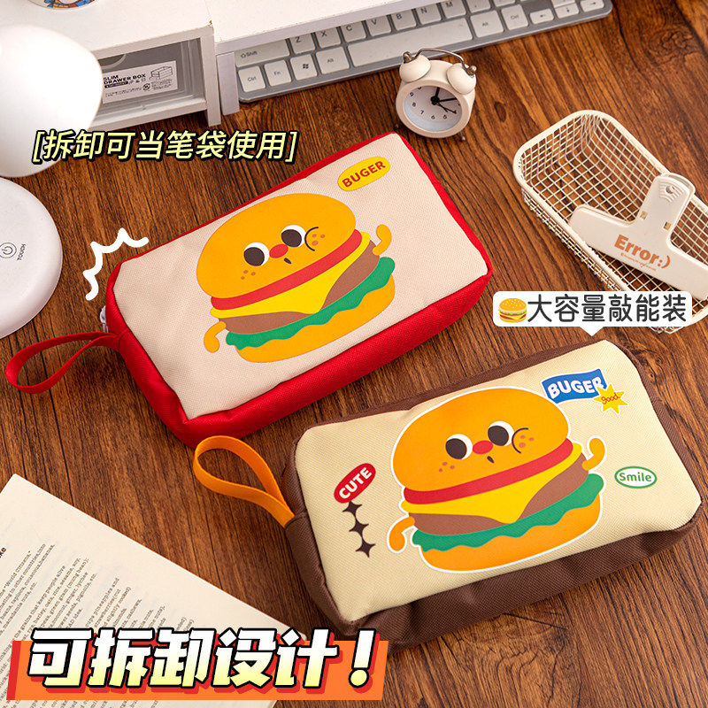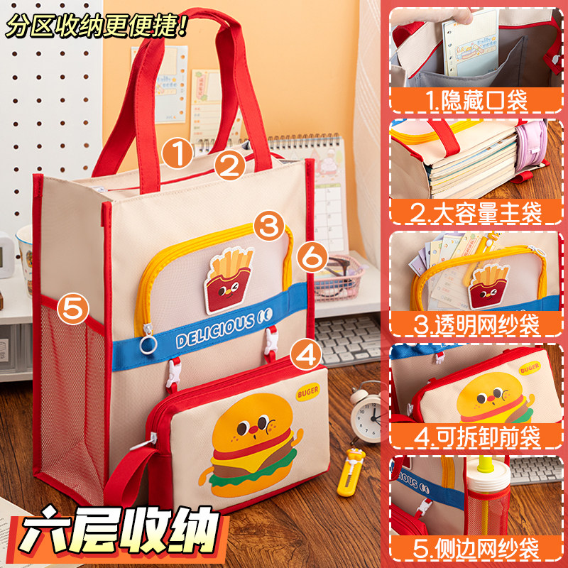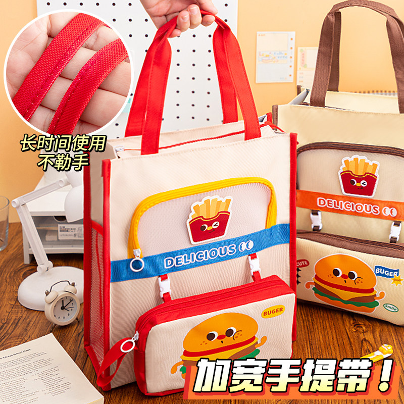 汉堡薯条补习袋手提袋学生拎书袋大容量帆布袋小学生初中作业试卷收纳袋美术袋可拆卸文件袋男女学习补课包