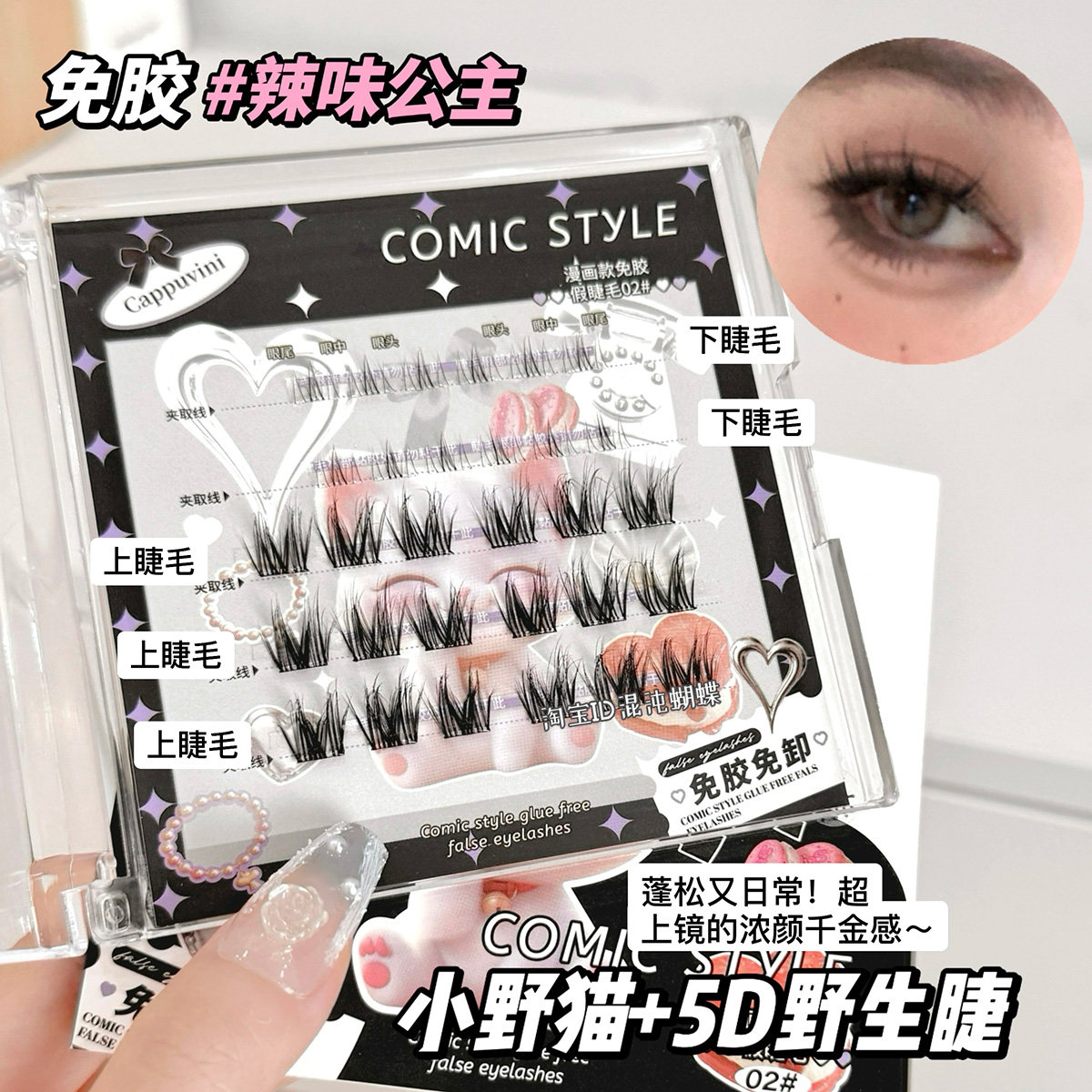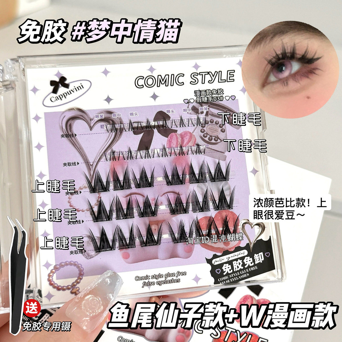 梦中情猫!免胶假睫毛女自然5d婴儿弯自粘下睫毛仿真女团cos单簇