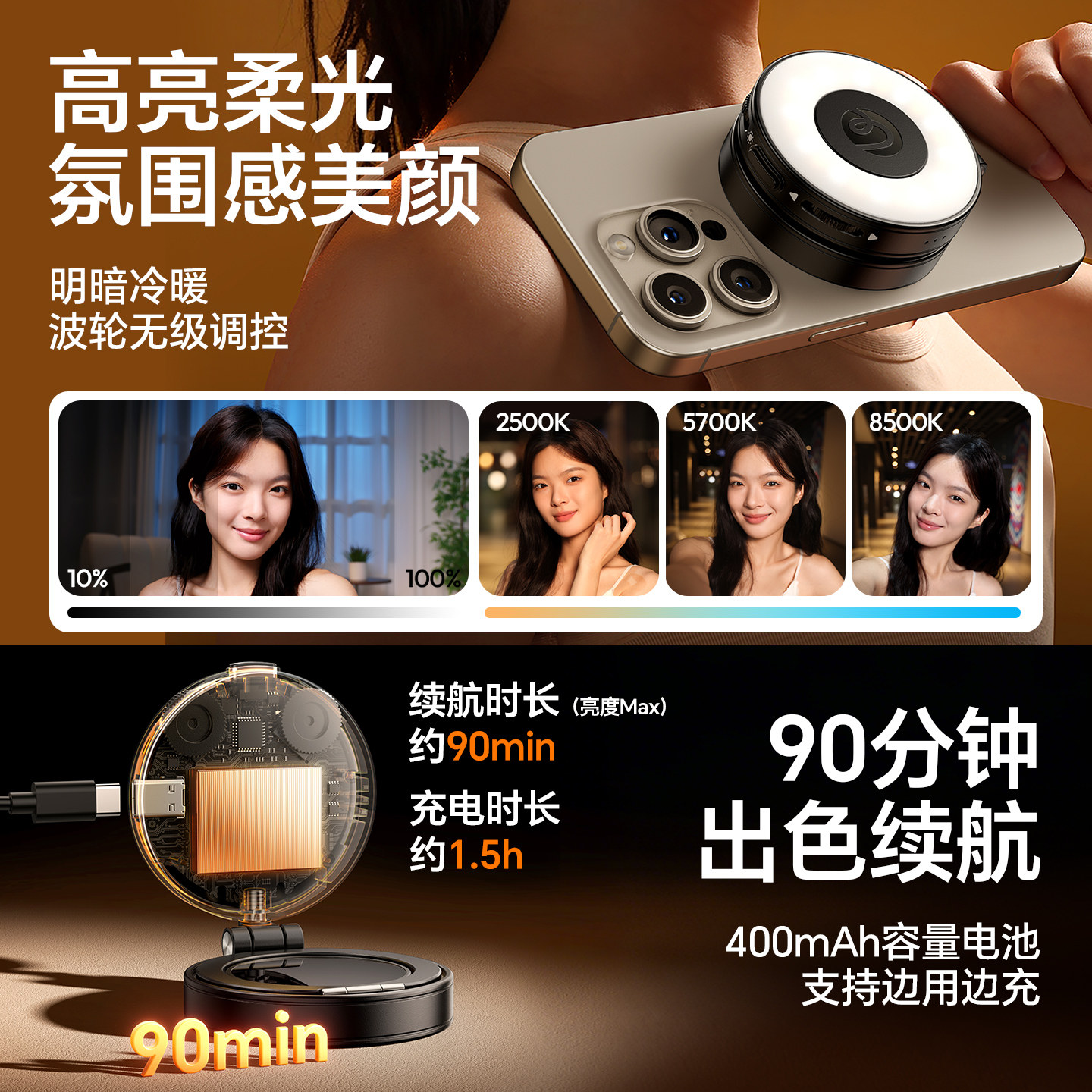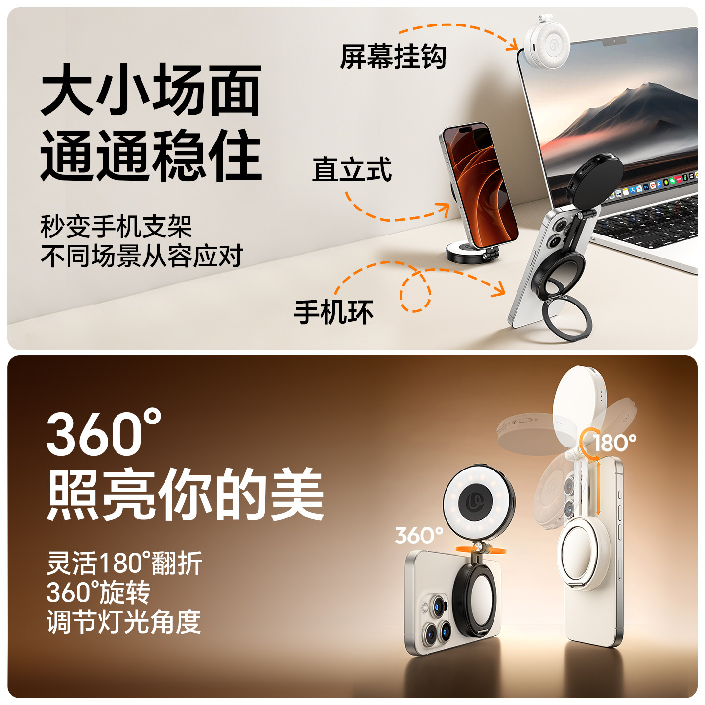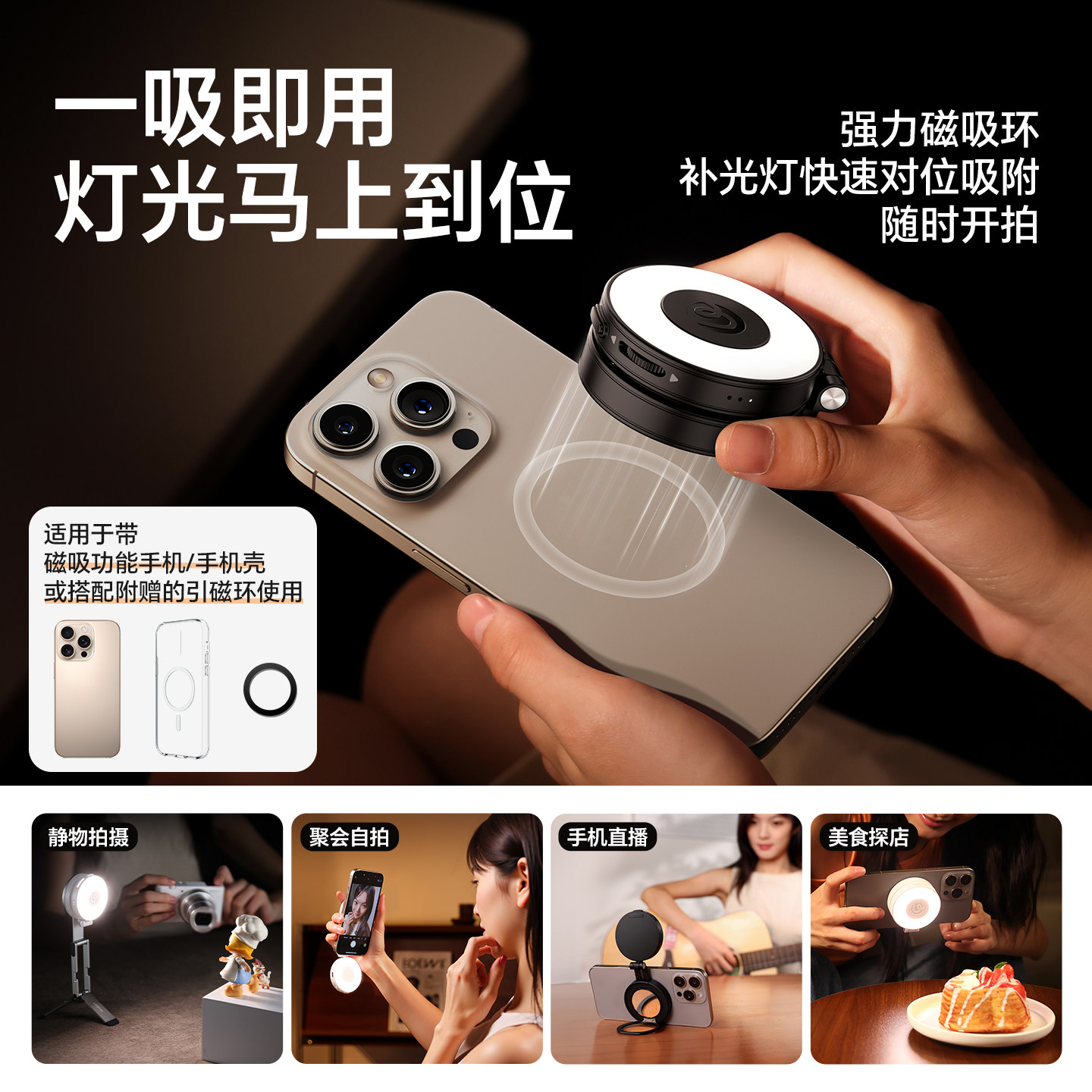 Ulanzi优篮子Magsafe磁吸熊猫灯II手机补光灯便携美颜冷白皮打光适用苹果iPhone17/16直播户外自拍补妆神器