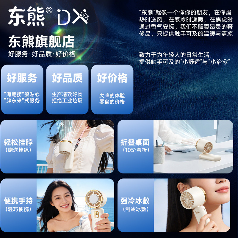 【制冷小空调】2026新款超强力手持小风扇静音迷你学生usb便携式随身超长续航可充电手拿小型折叠电风扇挂脖
