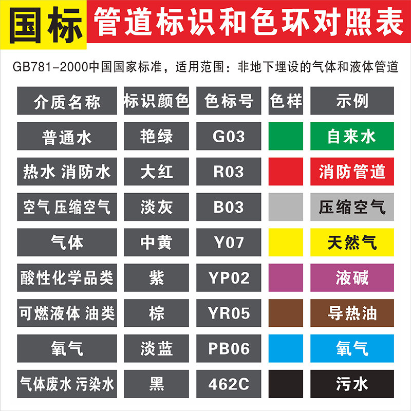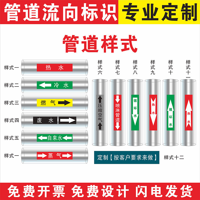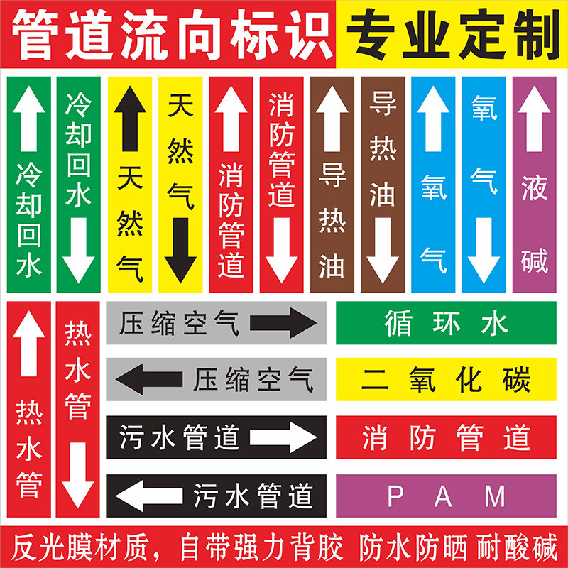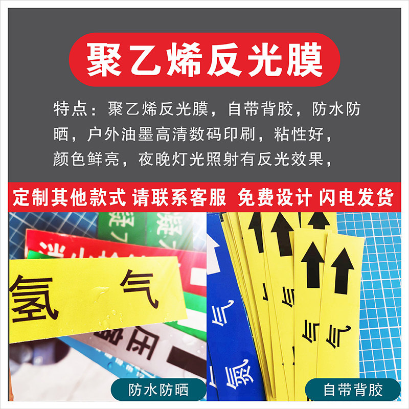 消防管道喷淋水氧气污水压缩空气废水雨水管道天然气管道标识管道流向介质标识定制医院化工厂色环标签反光膜