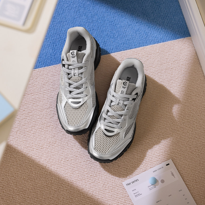 天鹅鞋361芭蕾运动鞋女2026春季网面保暖薄底银色休闲女德训鞋子